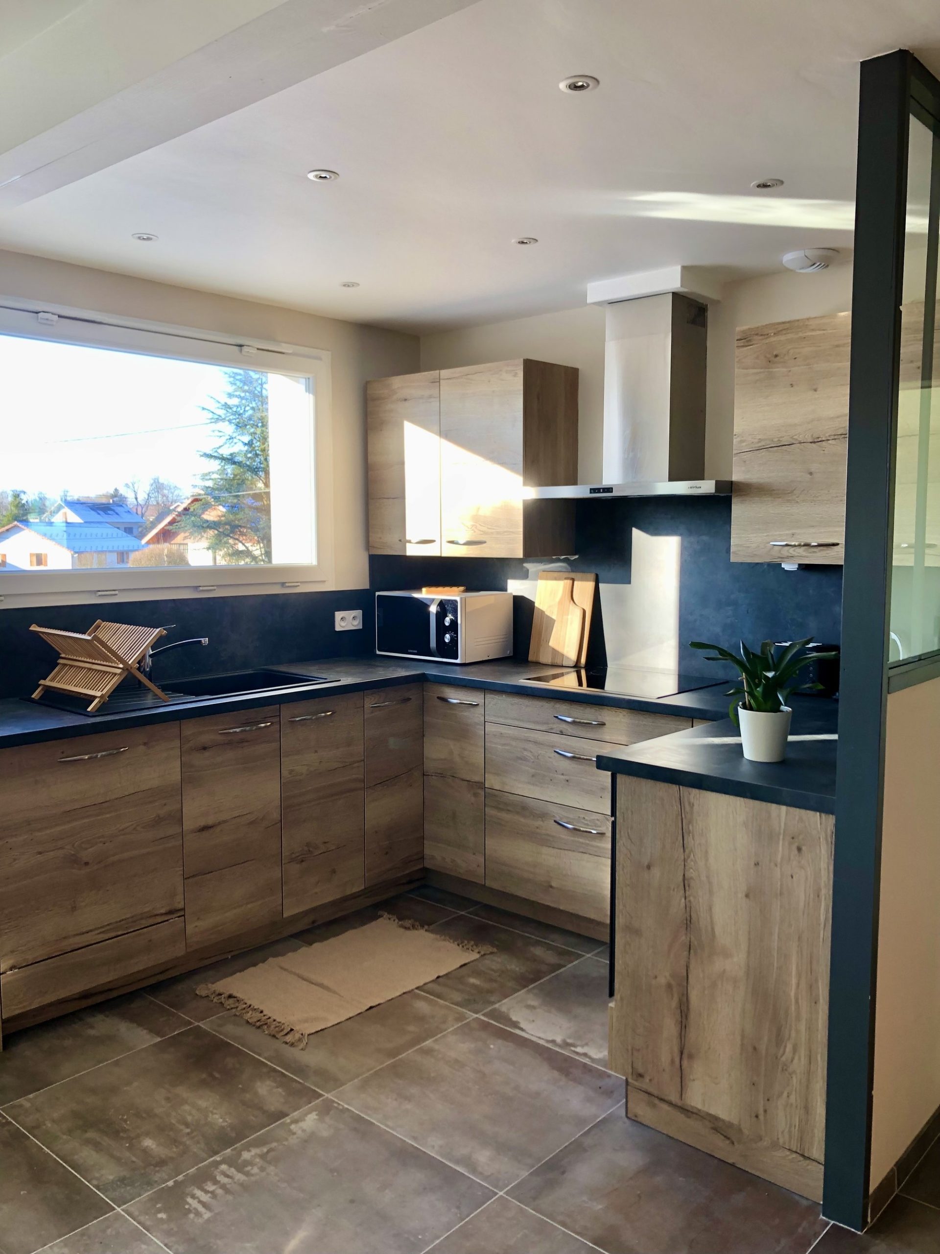 Le rdc se compose d'une grande pièce lumineuse avec cuisine toute équipée ouverte sur salle à manger et salon, vous trouverez une chambre double lit king size, une deuxième chambre avec lits twins ou double, un toilette, une salle de bain avec douche italienne.