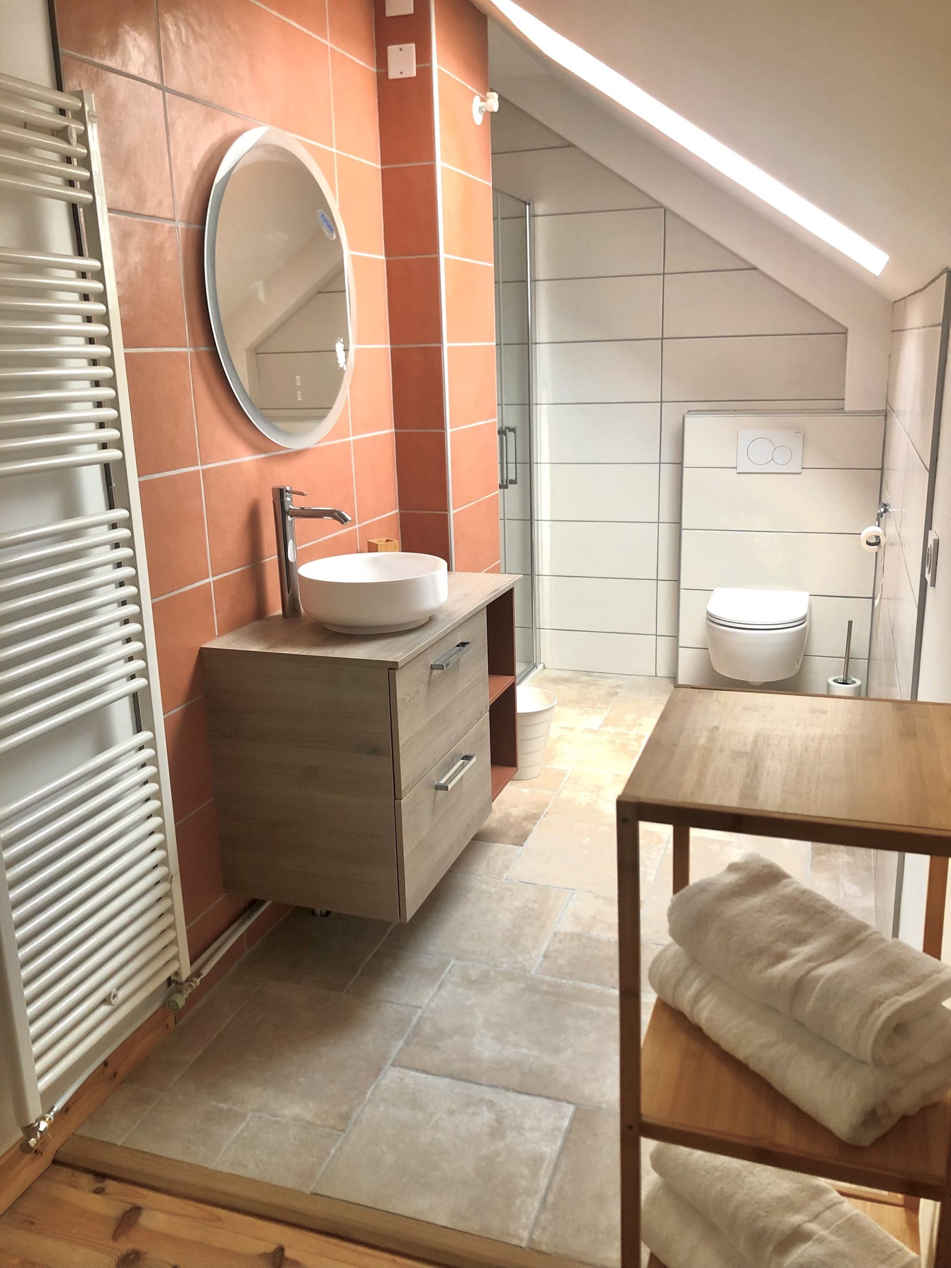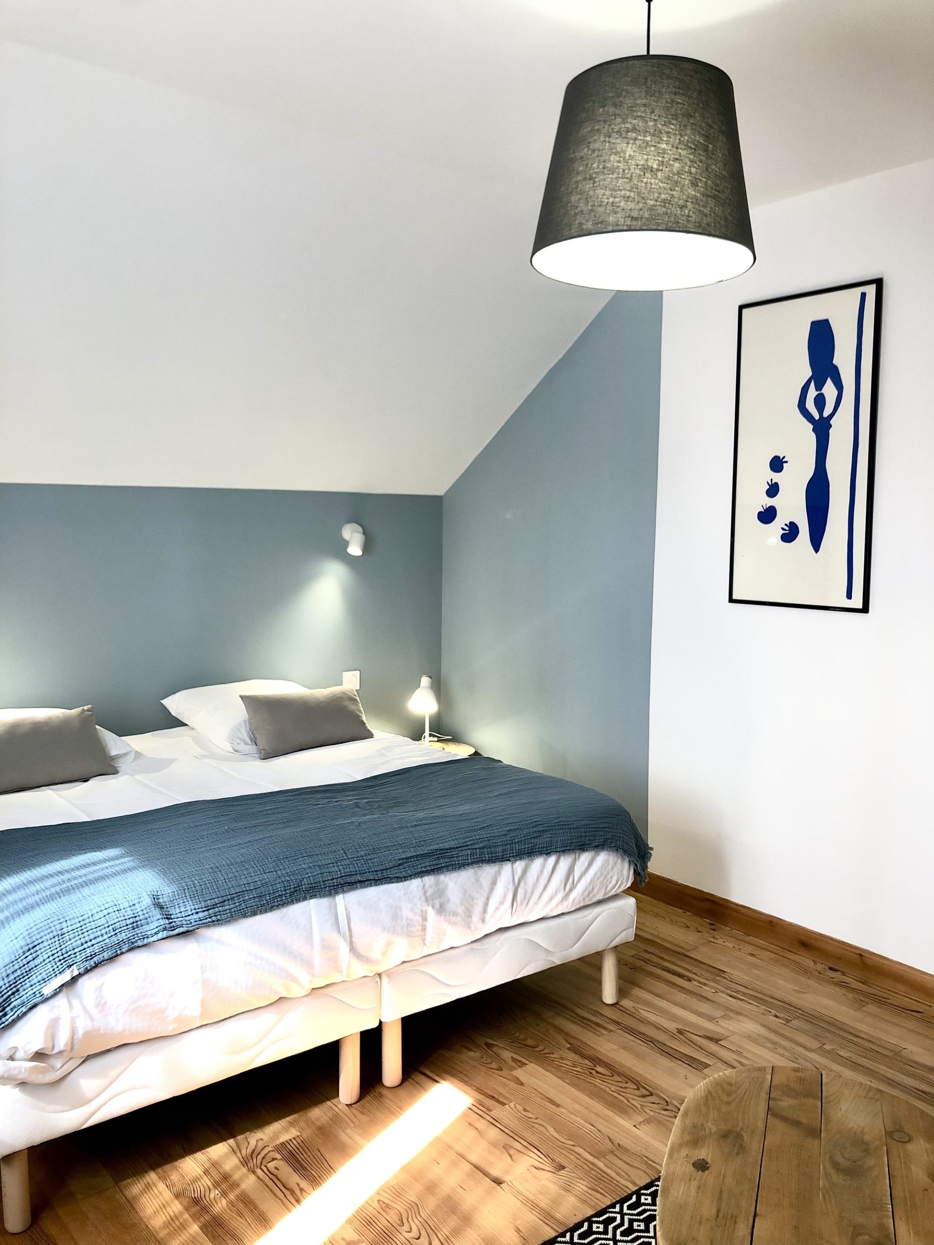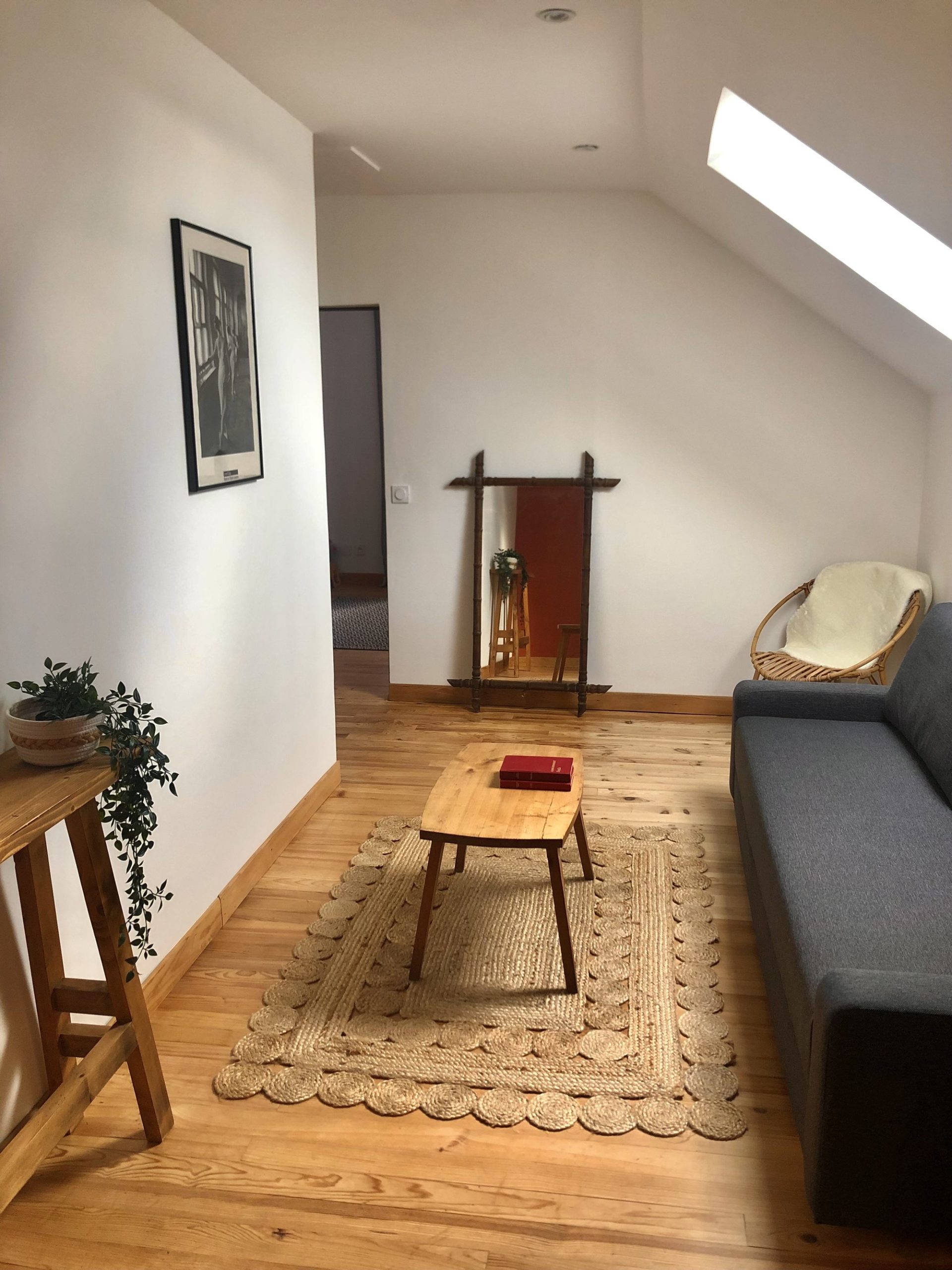 L'étage se compose d'un petit salon cosy idéal pour le travail ou la lecture, transformable en chambre (lit double), vous trouverez également une grande chambre triple, une chambre double et une salle de bain avec douche italienne et WC.