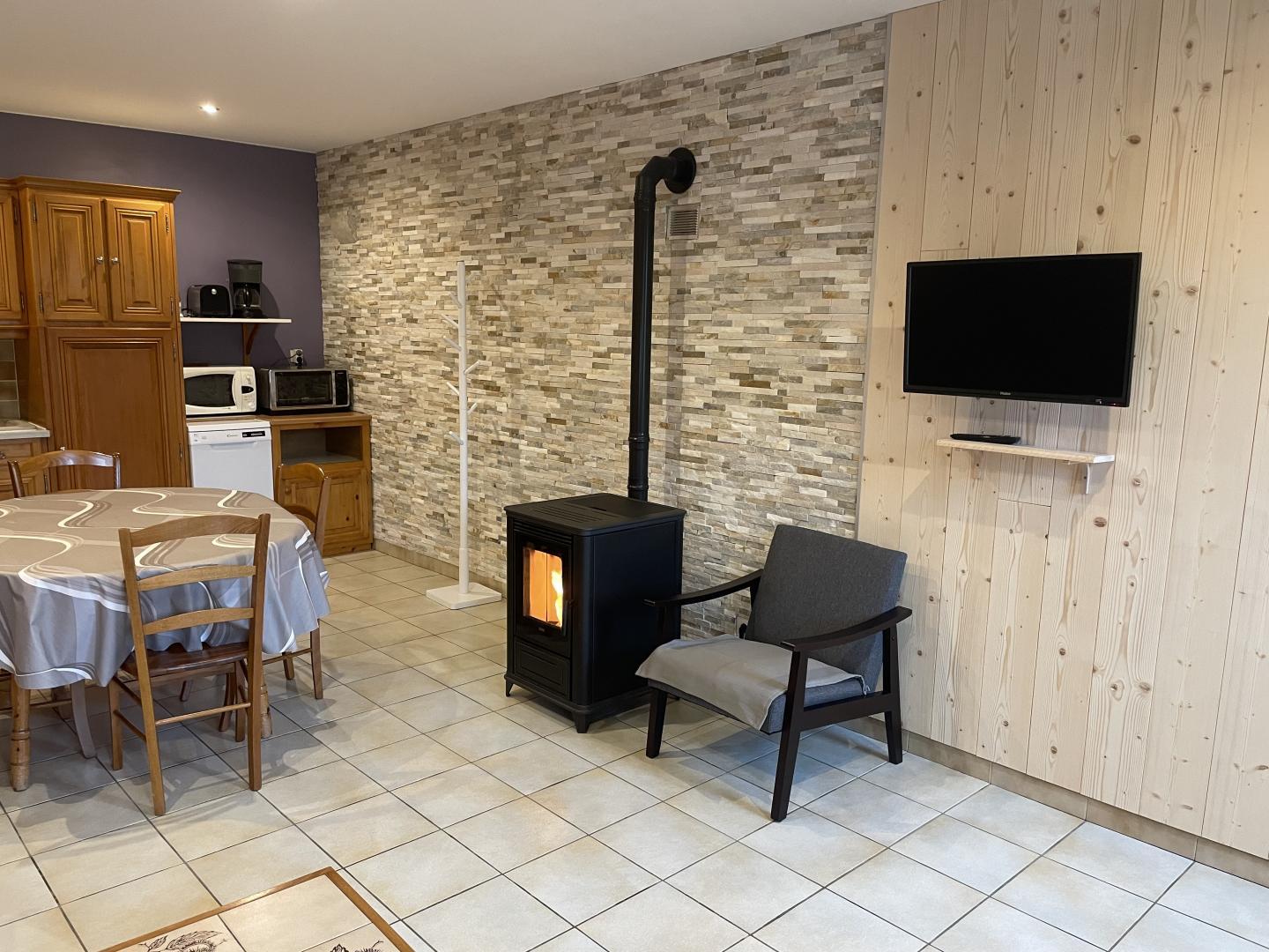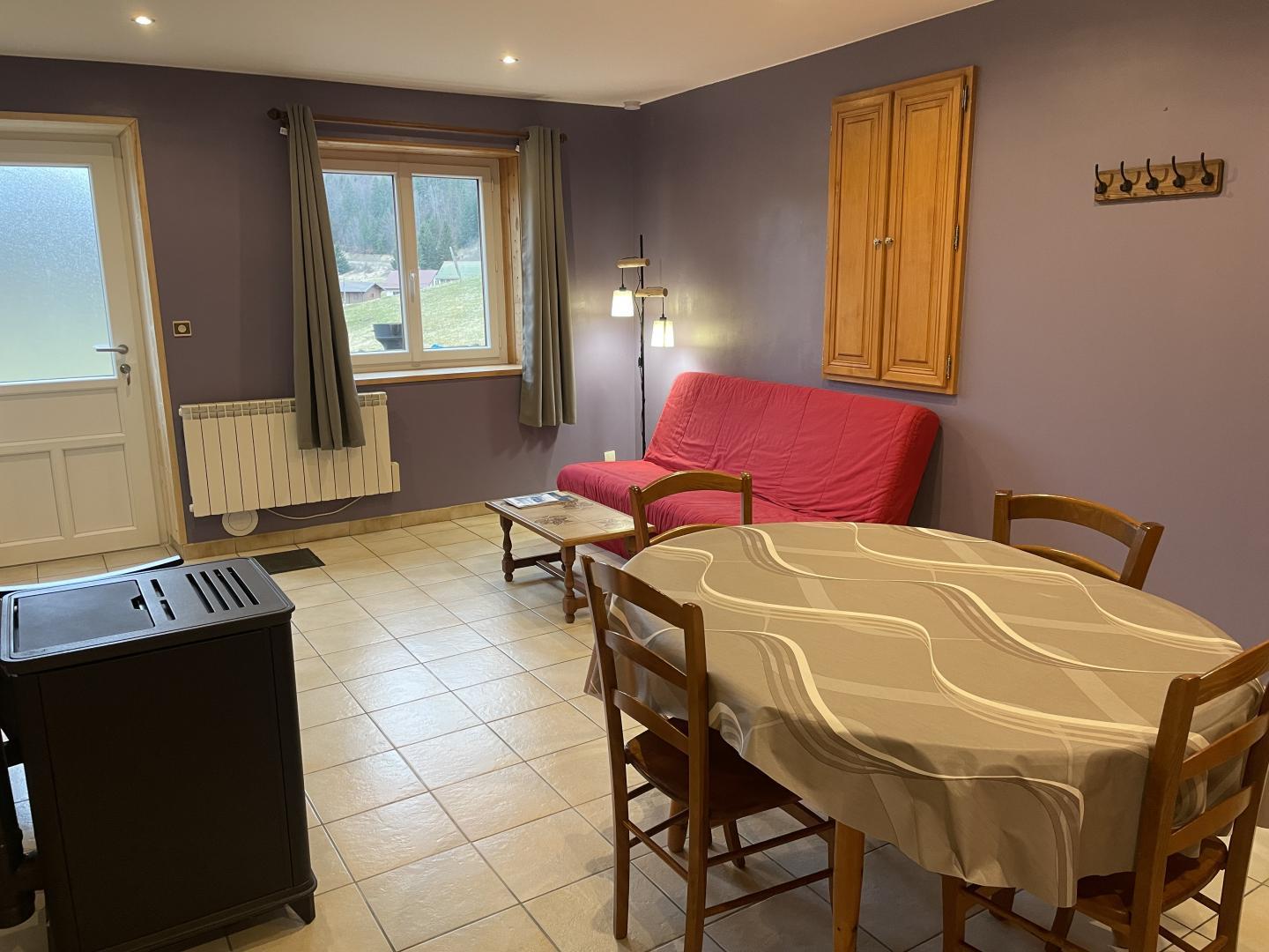 Au coeur du parc national régional du Haut-Jura, sur le site naturel et préservé des Hautes Combes offrant été comme hiver de splendides paysages se situe ce logement au rez de chaussée d'une maison où se trouve 3 autres gîtes. Cuisine séjour, salon, salle d'eau, wc indépendants, 1 première chambre avec 1 lit 2 personnes et 1 chambre avec 2 lits 1 place, terrain attenant non clos, salon de jardin, transats, barbecue, table de ping pong, terrain de pétanque. Chauffage électrique et poêle à granulé (pellets fournis). Forfait électricité de 100 kw en été et 150 kw en hiver, prévus par semaine et inclus au tarif. Lit, baignoire et chaise bébé sur demande. En été location de VTC/VTT électrique à 7km. t. Ferme à proximité avec possibilité de visite.