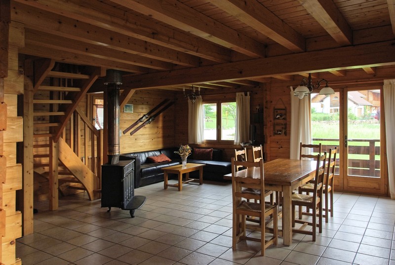Chalet indépendant situé au coeur du parc Naturel Régional du Haut Jura, à la croisée des chemins de randonnée, à proximité des grands sites pittoresques (lac de Chalain, Cascades du Hérisson, Gorges de la Langouette, Belvédère des 4 lacs) et de la Suisse, cet authentique chalet surplombe le village de Foncine le Haut. Au RDC: séjour-salon avec coin cuisine, canapé convertible, lingerie, sèche linge. A l'étage: ch1: 2 lits 1 pl, ch2: 1 lit 2 pl (160), ch3: 1 lit 2 pl, salle de bain. Terrasse couverte, cour et terrain non clos de 700m², salon de jardin, barbecue. Chauffage électrique compris. Bois vendu: 50€/stère. INTERNET - l'option ménage est à demandé au propriétaire - payable auprès du propriétaire 60€