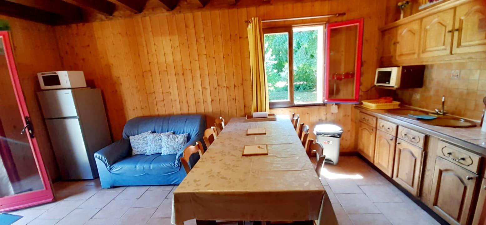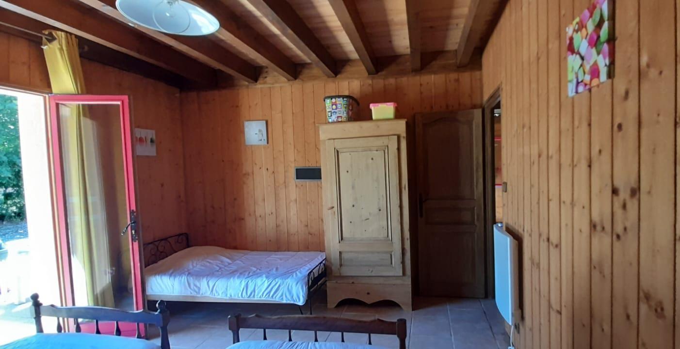 Maison indépendante avec cuisine-séjour, canapé, lecteur DVD, 1 chambre avec 1 lit 2 places et une autre avec 3 lits de 90 par 190, salle de bains avec toilettes. Cour et jardin non clos, garage, salon de jardin, barbecue et transats. Chauffage au bois (fourni gratuitement). Toutes charges comprises. Forfait ménage obligatoire (50€) avec les animaux.