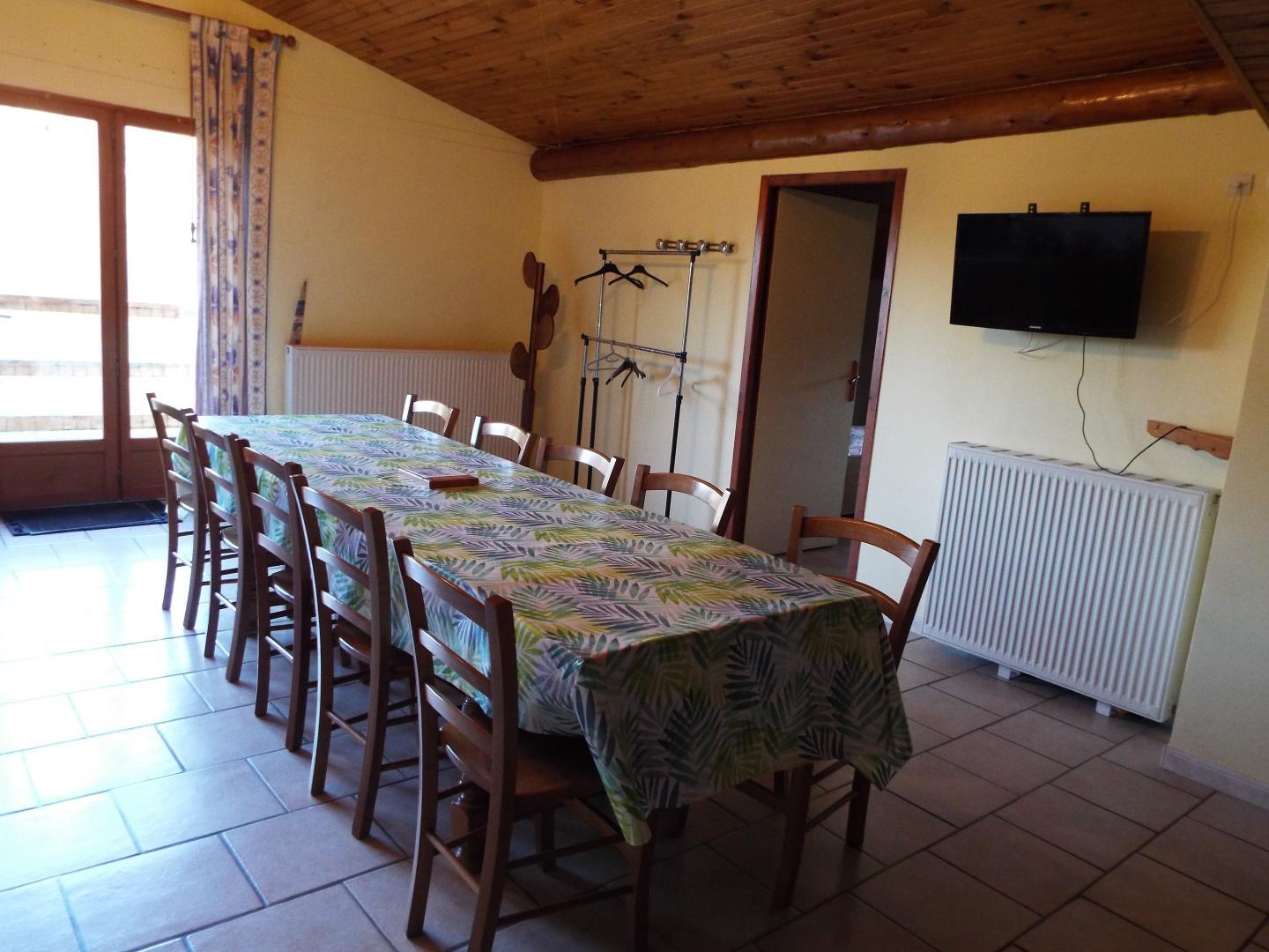 Logement au 2° étage. Cuisine-séjour-salon, salle de bains, salle d'eau, wc indépendants. ch1: 1 lit 2 pl, 1 lit 1 pl, ch2: 2 lits 1 pl, ch3: 1 lit 2 pl, cour et terrain attenant non clos, prise TV, barbecue, salon de jardin. Chauffage central. Toutes charges comprises. Côté extérieur, vous pourrez profiter d'un salon de jardin privatif, d'un barbecue et d'un vaste terrain partagé avec balançoire, filet de badminton, table de ping-pong et terrain de pétanque .