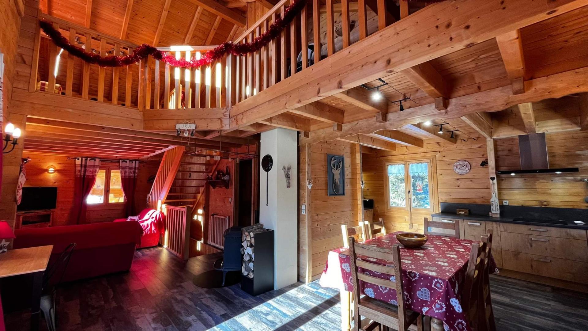 Chalet indépendant, entrée au rez de chaussée, à l'étage: séjour-salon, poêle à bois, lecteur DVD, cuisine intégrée avec 1 senseo et cafetiere filtre, congélateur, salle d'eau, wc indépendant, ch1 : suite parentale 1 lit 2 pl avec salle d'eau et wc attenants ch2: 1 lit 2 pl. Au 2ème étage: mezzanine avec coin-détente et canapé, ch3: 2 lits 1 pl, chauffage électrique, salon de jardin, barbecue, balcon-terrasse, terrain attenant, abri voiture. Toutes charges comprises. Possibilité 2 lits 1 pl supplémentaires dans la 3ème chambre. Équipement Bébé. Les lits sont équipés de couettes et oreillers : prévoir les housses adaptées. Supplément de 11€/pers/nuit au delà de 6 pers. Parking privé sur place.