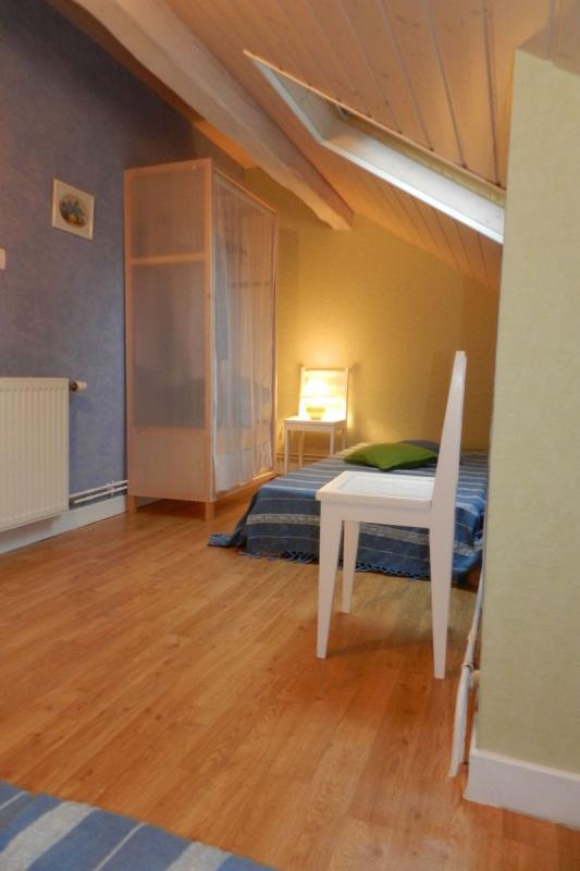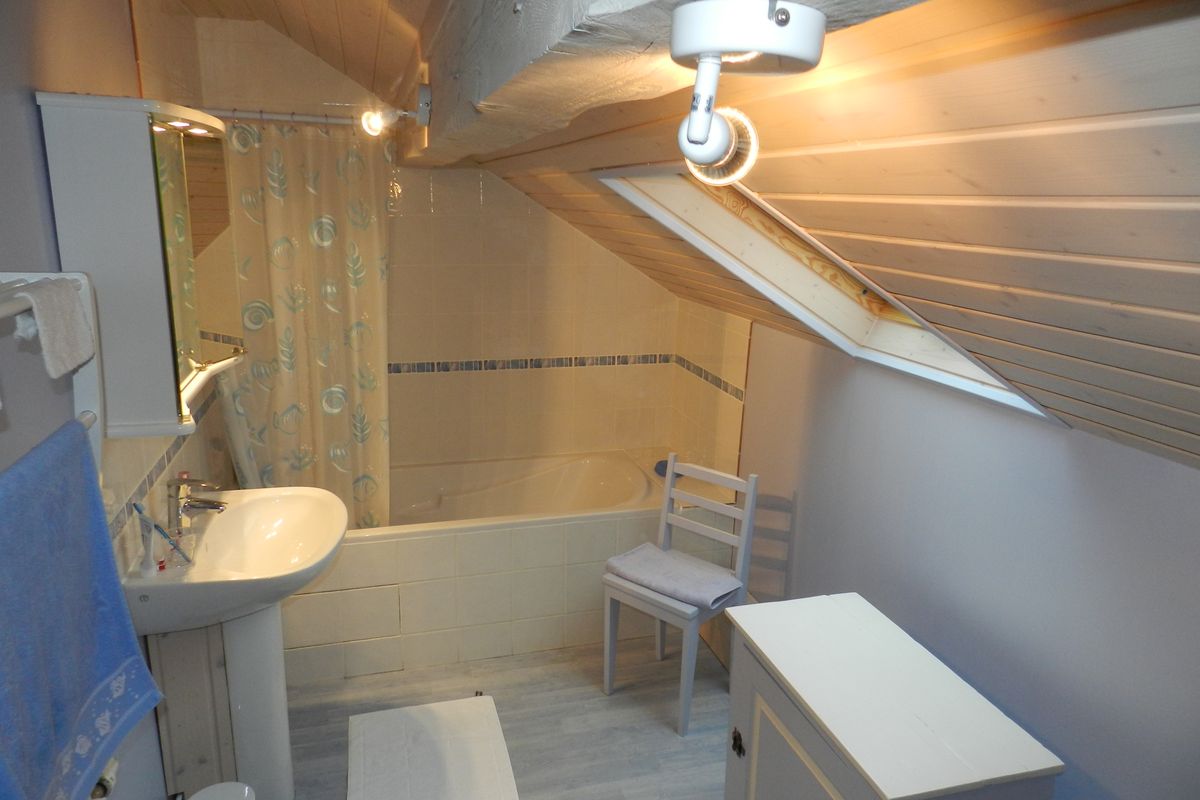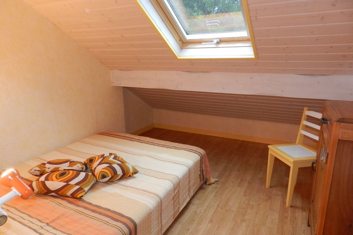 Maison indépendante à 600m du lac de Chalain. 1er niveau par 6 marches extérieures. Grande cuisine entièrement équipée, salon indépendant avec TV, bibliothèque et banquette BZ, CH1: 1 lit 2 pl, salle d'eau, wc séparé. A l'étage, CH2: 2 lits 1 pl et petite alcôve avec 1 lit 2 pl, CH3 : 1 lit 2 pl et petite alcôve avec 2 lits 1 pl, balcon avec vue sur le lac. Salle de bains avec wc. Terrain attenant clos, jardin arboré, terrasse avec salon de jardin et barbecue. Table de ping pong. Équipement bébé sur demande. Possibilité de location de draps (14€/paire). WE et courts séjours de 350€ à 550€. Forfait ménage obligatoire d'un montant de 80 euros