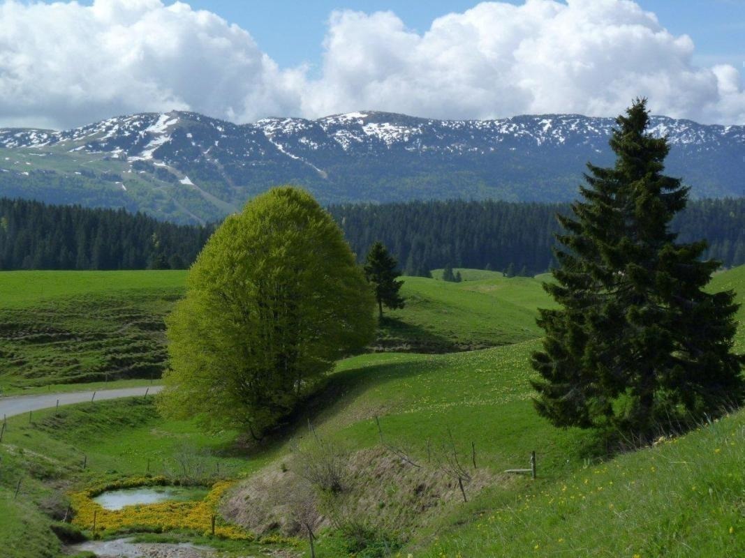 Appartement au RDC d'une ancienne et authentique ferme du Haut-Jura où se trouve un autre gîte (G429). Cuisine, salle d'eau, WC séparés. Une grande chambre avec cloison entre les lits, 1 lit 2 pl et 2 lits 1 pl. Site unique face aux Monts Jura (Crêt de la neige). Traversée par la GTJ et permettant toute activité au calme. Dans le Parc Naturel Régional du Haut-Jura. Terrain attenant non clos, espace jeux, local à ski et vélos, salon de jardin, barbecue. Chauffage central. Toutes charges comprises, taxe de séjour en sus