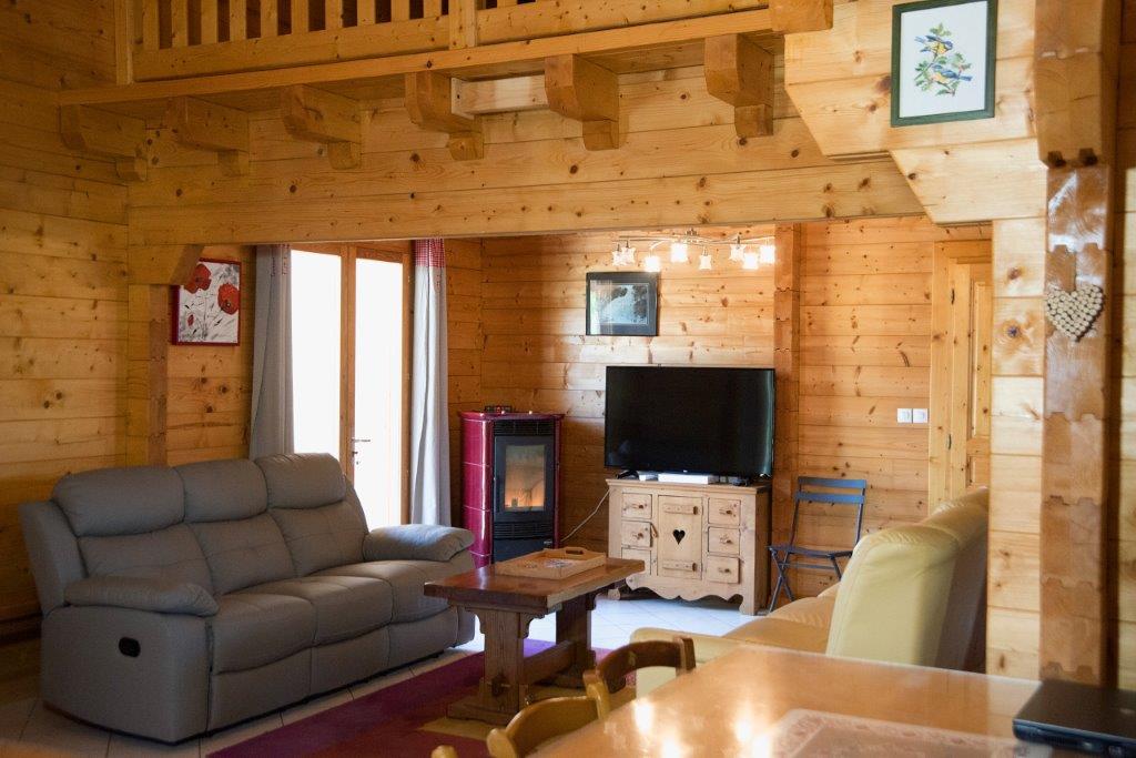 Chalet situé à quelques kilomètres de nombreux lacs et cascades, sentiers de randonnée et autres sites touristiques incontournables ! Une grande pièce à vivre lumineuse avec cuisine ouverte sur salon et salle à manger, cellier avec lave-linge et sèche-linge, une salle de bain avec baignoire, wc indépendant, 3 chambres ( une chambre avec 2 lits 1 place et 2 autres avec chacune 1 lit 2 places dont une qui dispose d'une douche avec lavabo). A l'étage : une mezzanine avec baby-foot, 2 chambres avec chacune 1 lit 2 places et 1 lit 1 place, salle d'eau avec douche, wc indépendant. Vous pourrez profiter de la grande terrasse avec salon de jardin et barbecue. Abri couvert pour 4 voitures. Chauffage : un sac de granulés fourni par jour. Le sac supplémentaire sera facturé 9.00€