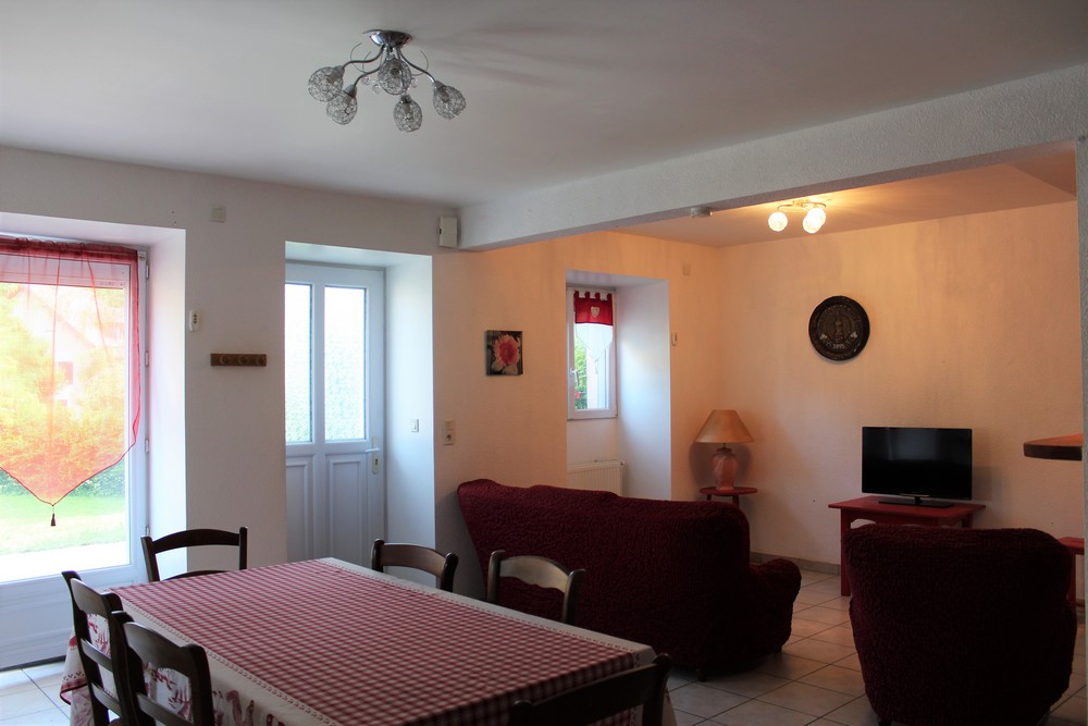 Idéalement situé dans un petit village calme au coeur de la région des lacs et des cascades, et non loin du Haut-Jura, ce joli gîte lumineux et fonctionnel saura vous séduire. Au rez-de-chaussée, vaste pièce à vivre composée d'une salle à manger, d'une cuisine entièrement équipée et d'un coin salon avec télévision écran plat. Wc indépendants. A l'étage, deux chambres avec chacune un lit de 140 et une troisième chambre avec 2 lits de 90. Salle de bains avec baignoire, lave-linge et sèche-linge. Wc indépendants. A l'extérieur, terrasse avec salon de jardin et barbecue. Terrain attenant non clos. Un gîte identique se situe juste à côté.