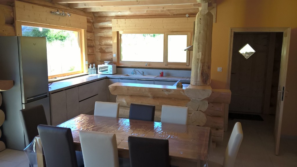 Très beau chalet indépendant en bois rond situé en plein cœur du Parc naturel régional du Haut-Jura, avec vue sur le Crêt de Chalam. Hall d'entrée, buanderie avec lave linge, 1 wc indépendant. Pièce à vivre lumineuse avec cuisine intégrée toute équipée (four, micro-onde, grille-pain...), équipée ouverte sur salle à manger et salon avec canapé convertible, poêle à bois. Une 1ère chambre avec 1 lit 140x190 avec salle d'eau privative (douche et wc). A l'étage : 2ème chambre avec 1 lit en 160x200, 3ème chambre avec 2 lits 1 place, 4ème chambre avec 2 lits 1 place superposés. Salle d'eau avec douche et wc. Terrasse attenante avec salon de jardin, parasol et barbecue. Chalet construit selon les normes RT 2012. A 5 minutes à pied du chalet, vous trouverez de nombreux commerces : magasin de location de ski, Boulangerie, épicerie, Charcutier boucher traiteur, Fruitière, bar et restaurants.
