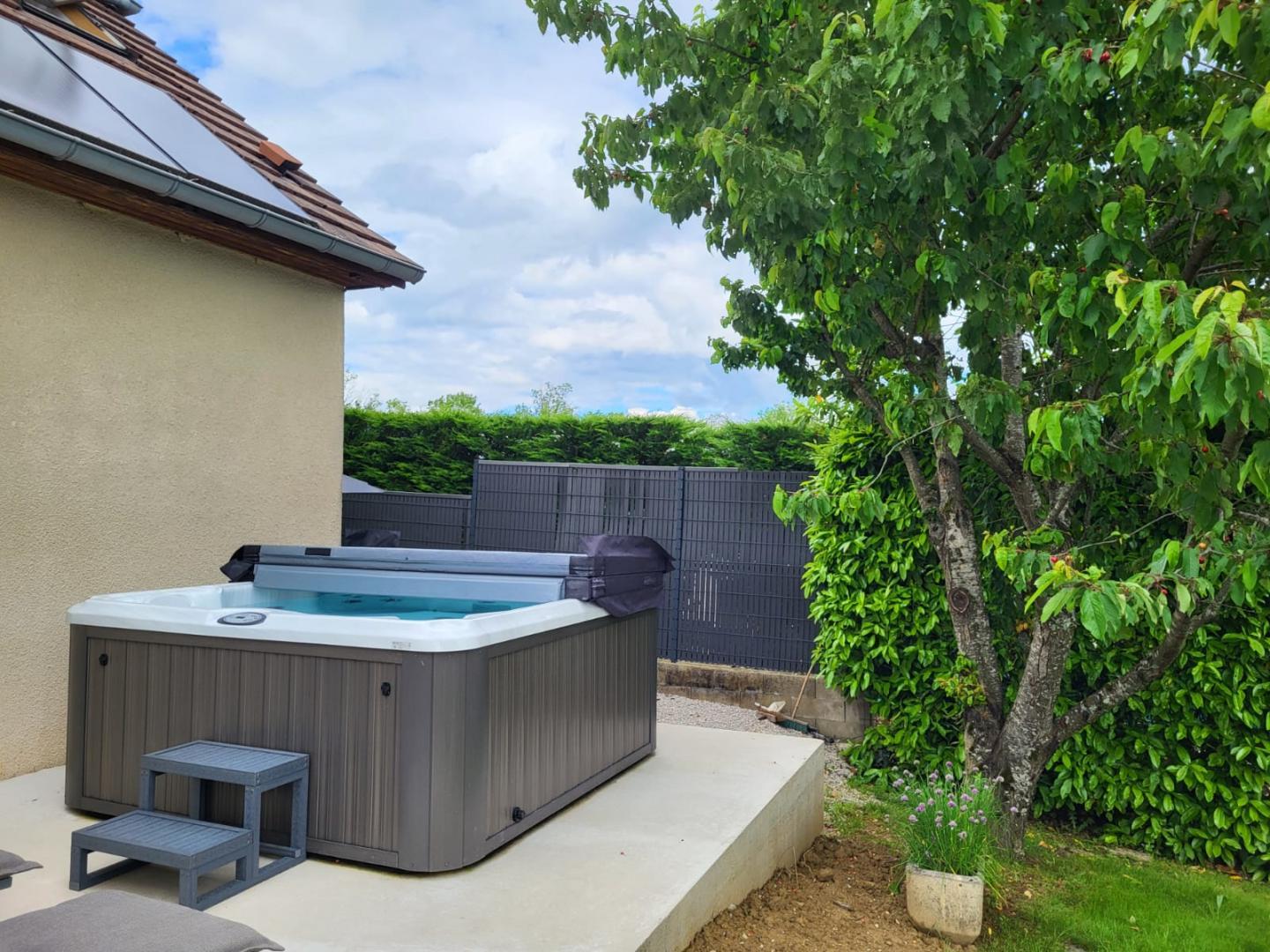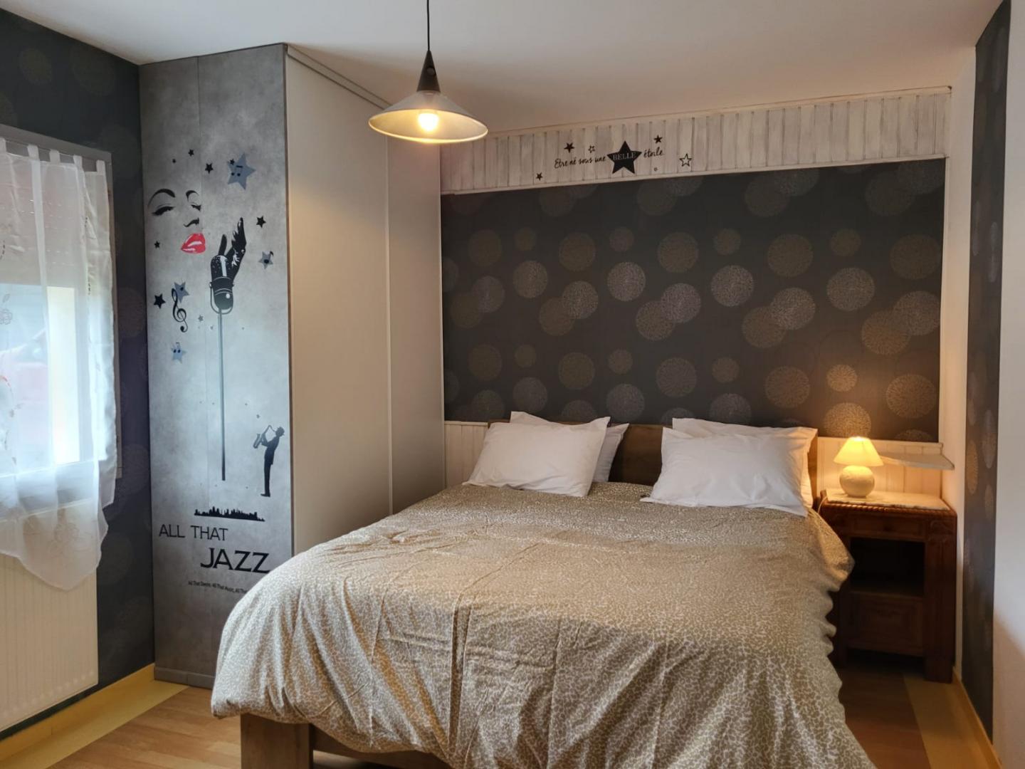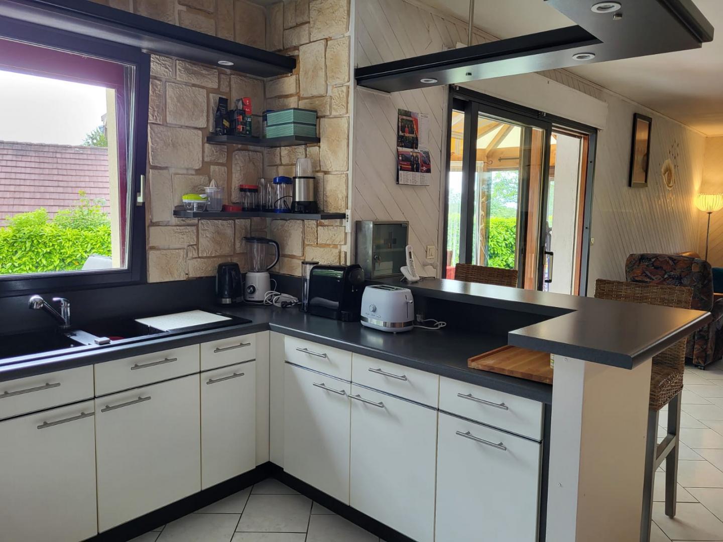 Située dans une ruelle au calme, cette maison indépendante entièrement clôturée se compose au rez-de-chaussée d'une pièce de vie avec cuisine équipée, d'un espace salle à manger, d'un coin salon avec TV et cheminée. La pièce de vie offre un accès direct à une véranda. Une chambre avec un lit double (160*200), une salle d'eau avec douche à l'italienne et un WC et une buanderie complète le rez-de-chaussée. A l'étage, une chambre avec 1 lit double (140*190), 2 chambres en enfilade, l'une avec 1 lit double 140*190 et la seconde avec 1 lit double 160*200 et TV, une salle d'eau avec douche à l'italienne et un WC. Climatisation dans les chambres Côté extérieur, vous pourrez profiter des beaux jours dans la véranda aménagée avec un salon de jardin et vous détendre dans le jacuzzi. Idéalement situé pour découvrir la ville thermale de Lons le Saunier et son musée de la Vache Qui rit, la région des lacs est accessible en une trentaine de minutes et l'espace de loisirs nautiques de Desnes se trouve à 15 minutes.