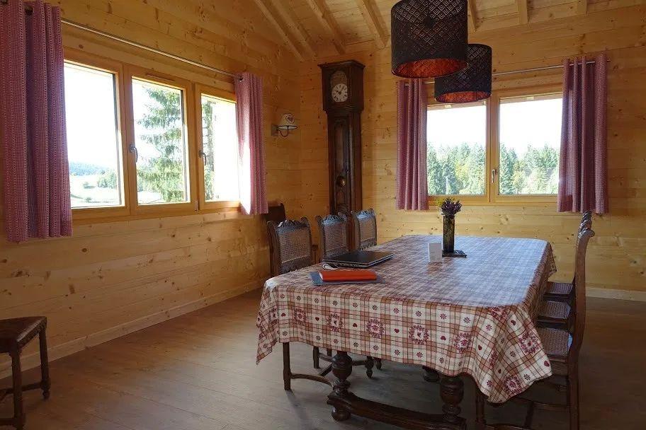 Découvrez ce magnifique chalet indépendant et lumineux. Pour accéder au chalet, 42 marches à monter, ce bel hébergement se mérite ! Au rez-de-chaussée, entrée avec baie vitrée où vous trouverez tout le nécessaire pour déposer vestes et chaussures, cette pièce sert également de couloir pour accéder aux chambres et à la salle d'eau. La première chambre est équipée d'un lit 160*200. La seconde dispose de 2 lits superposés (4 x 90) avec un bureau et une bibliothèque. Retrouvez la salle d'eau avec une douche grande dimension et un lave-linge., WC indépendant. Au premier étage, profitez d'un très grand séjour avec cuisine toute équipée, espace salle à manger et coin salon avec canapé et TV . Depuis le séjour, profitez d'un grand balcon de 30 m² où vous pourrez admirer la vue imprenable et panoramique. Le jardin est attenant au balcon, il est en partie clos et vous disposerez d'un salon de jardin et d'un barbecue. Au second étage, une mezzanine équipée de 2 lits de 80 (pouvant faire un lit en 160) avec coin bibliothèque (livres et jeux de société). Idéalement situé : ski de fond derrière la maison, les pistes tracées sont à moins de 800m, à 100m de la Grande Traversée du Jura, à 400m : activité de chiens de traîneau, face au chalet : pentes de luge. A 3 km, partez à la découverte du village de Lajoux où se trouve le Parc Naturel du Haut-Jura avec une salle dédié aux visites, il y a également une fruitière, un bureau de poste, un commerce de matériel de ski ( vente et location) . A 5 km, à Lamoura (village touristique) retrouvez, restaurants, Office du Tourisme, musée du lapidaire et le Lac de Lamoura. A 6 km, au centre de Septmoncel, un boulanger et épicerie. Forfait électricité : 340 kwh en hiver et 170 kwh en été - dépassement à en sus à régler sur place