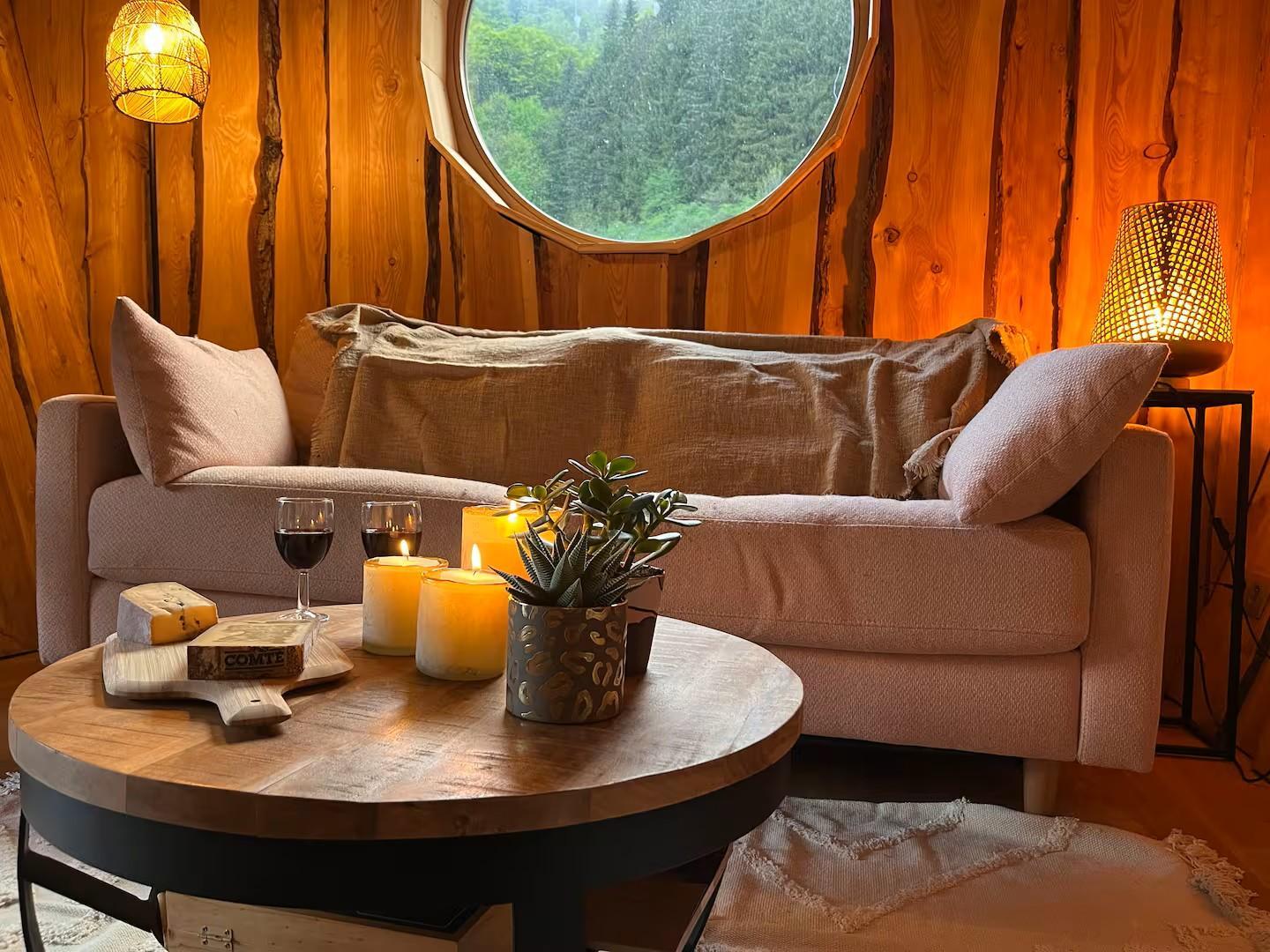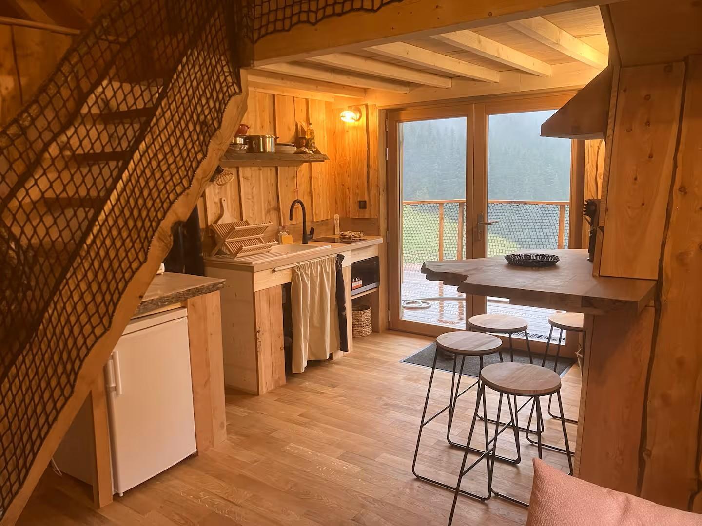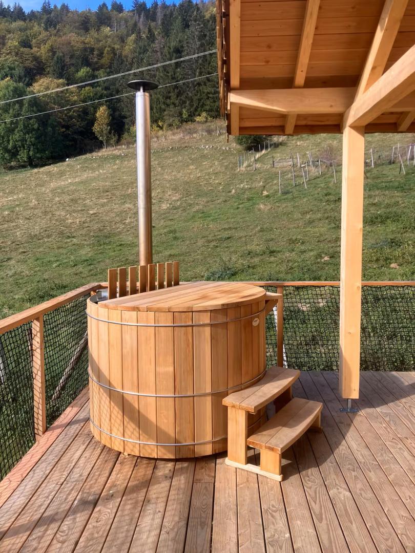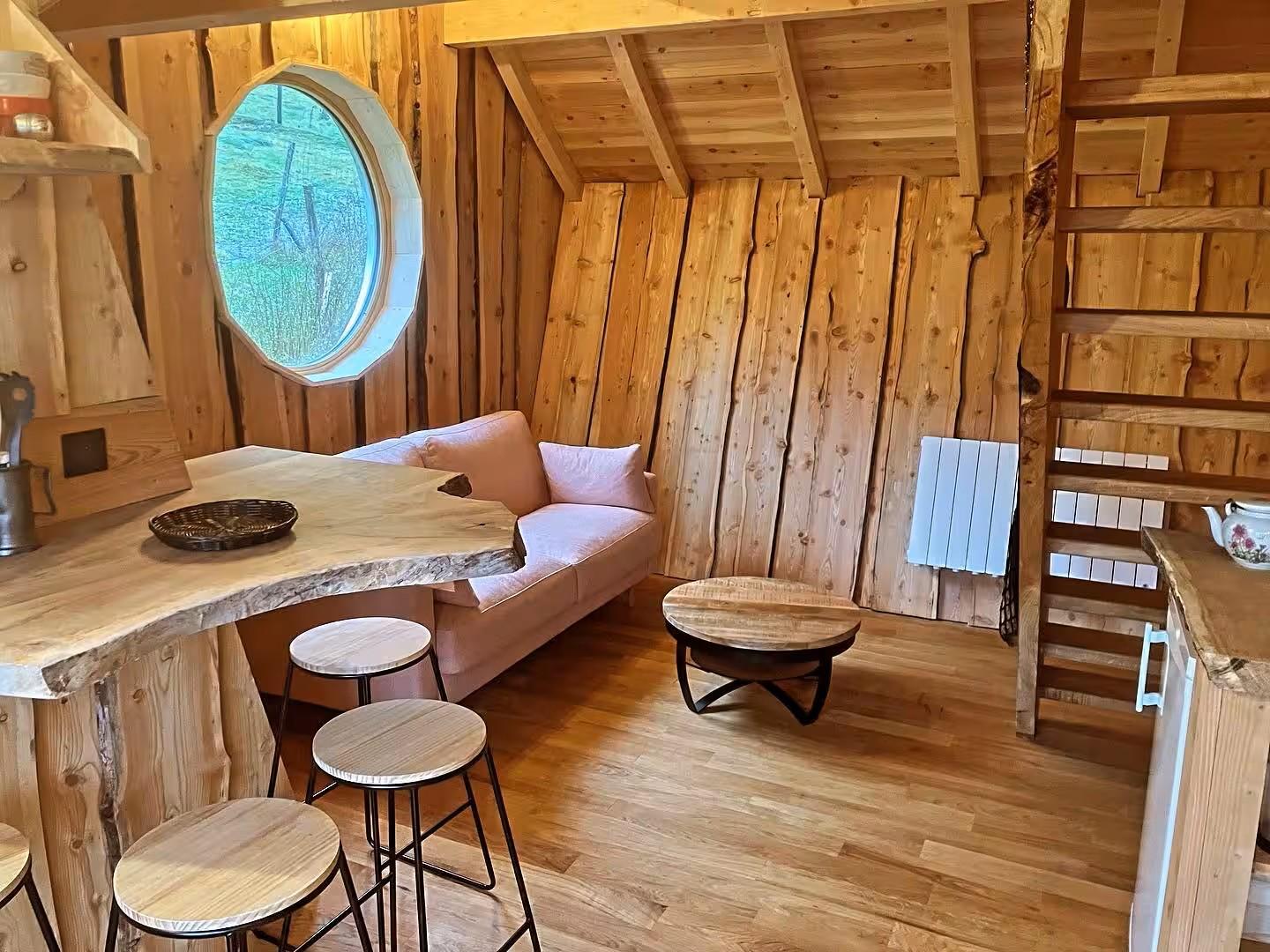 Besoin de calme et de nature? cette cabane en bois vous offrira une immersion totale dans la nature avec une vue imprenable sur la vallée et le ruisseau en contre bas. Elle se compose d'une pièce de vie avec coin kitchenette, espace repas et salon, d'une salle d'eau avec douche et WC et d'un couchage en mezzanine avec lit double d'où vous pourrez admirer le panorama sur la nature environnante. Pour votre plus grand confort votre lit sera fait à votre arrivée et les serviettes sont fournies. Côté extérieur, vous pourrez profiter d'une terrasse avec bain nordique, salon de jardin et barbecue Idéalement située au cœur du parc naturel du Haut-Jura, vous pourrez profiter de nombreux loisirs de pleine nature : ski de fond, cyclotourisme, randonnées. Vous trouverez également, au coeur du village, à 5 mns en voiture de nombreux commerces (restaurants, boulangerie, charcuterie, fromagerie, supérette). Parking sur place à côté de la cabane. Possibilité d'accueillir une ou deux personne supplémentaires : +30 euros par personne