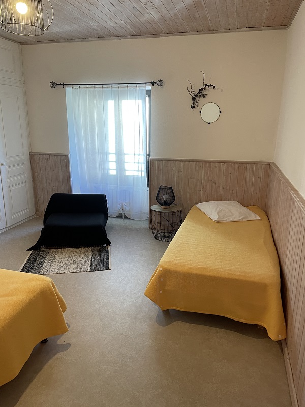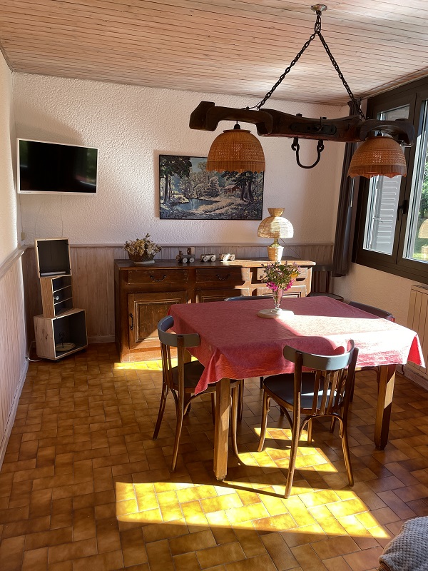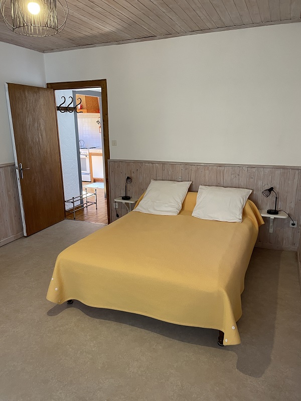 Logement à l'étage de la maison du propriétaire qui abrite 2 autres gîtes. Cuisine-séjour avec canapé, congélateur, ch1: 1 lit 2 pl, 1 lit 1 pl, salle d'eau, wc indépendants, buanderie commune. Cour et jardin clos communs aux 2 autres gîtes, salon de jardin, barbecue, jeux enfants, balançoire, terrain de pétanque. Chauffage central. Toutes charges comprises. Parc attenant de 5600 m².
