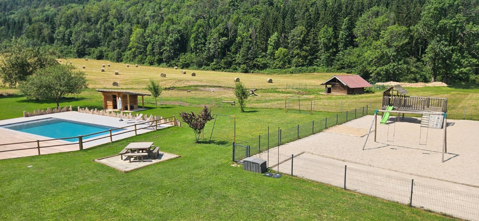 Idéalement situé au coeur du Parc Naturel Régional du Haut Jura, entre région des Lacs et Montagne pour en profiter été comme hiver, venez découvrir ce joli chalet entièrement neuf et accessible aux personnes à mobilité réduite. Il est composé d'une belle pièce à vivre avec cuisine toute équipée, d'un coin lecture et d'un espace repas. Une première chambre avec un lit de 160X200. Salle d'eau avec grande douche à l'italienne, double vasque. Wc indépendants. A l'étage, salon en mezzanine avec canapé, fauteuils et télévision écran plat. Une deuxième chambre avec 3 lits de 90 et une troisième chambre avec un lit de 160X200. Vous pourrez profiter d'une belle terrasse équipée de salon de jardin et barbecue. Grand terrain attenant avec aire de jeux pour enfants et terrain de pétanque et en été, la piscine enterrée et chauffée des propriétaires vous sera accessible. Pour plus de confort, les draps et linges de toilettes vous sont fournis. N'attendez plus pour réserver !