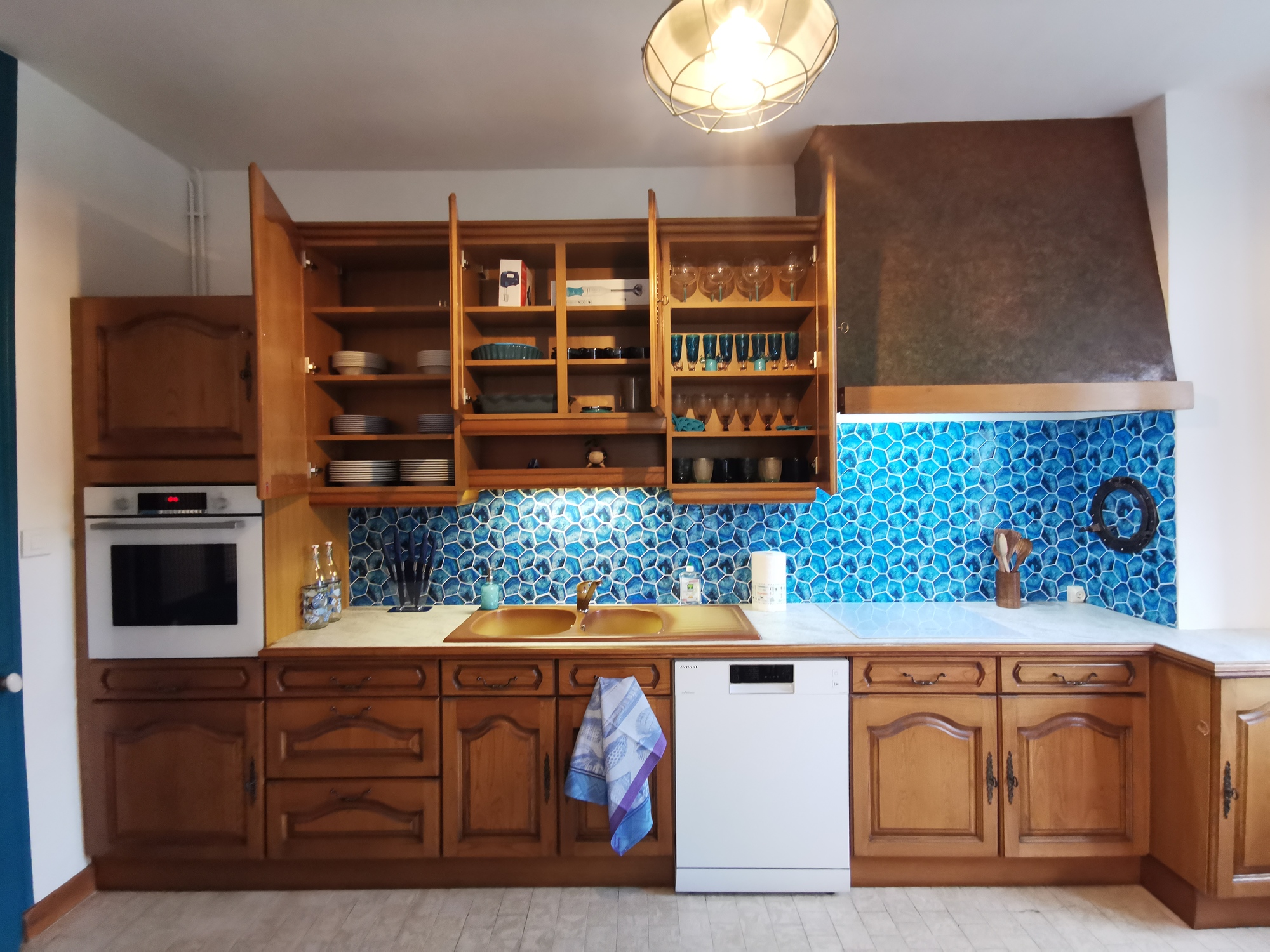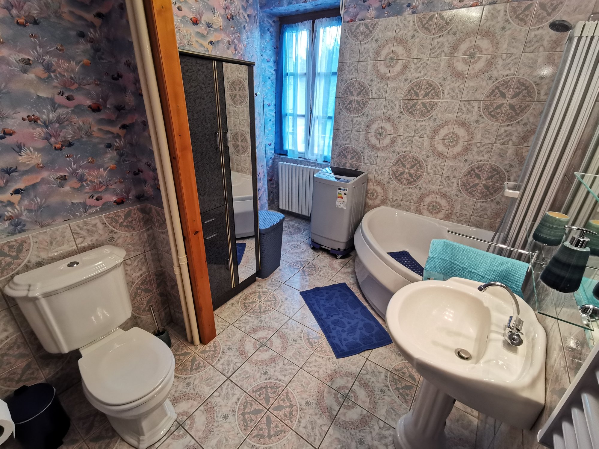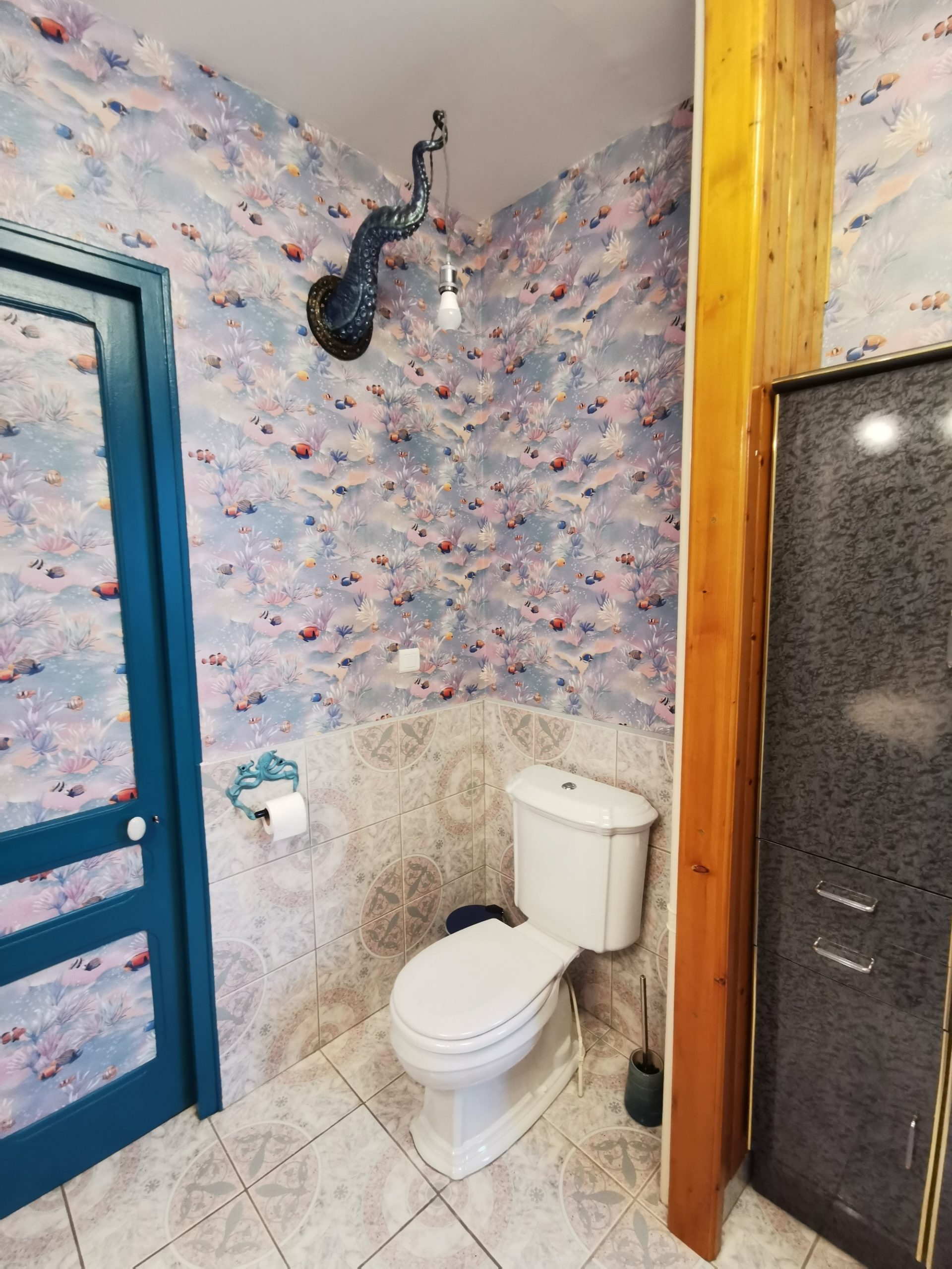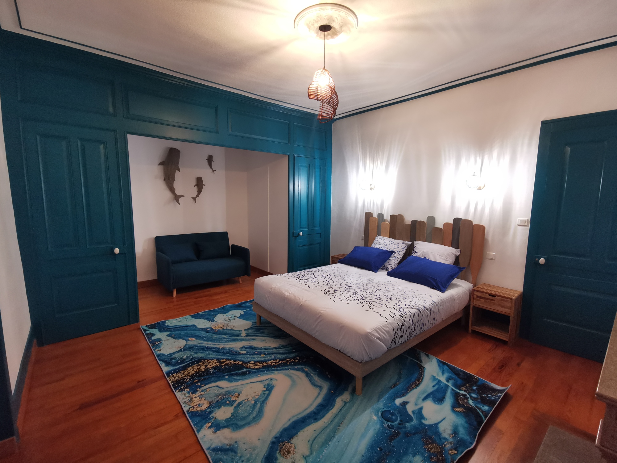 Le thème du logement : Lagon. Une décoration paisible, originale, et tout de bleu vêtue, jusqu'au bout des moulures !