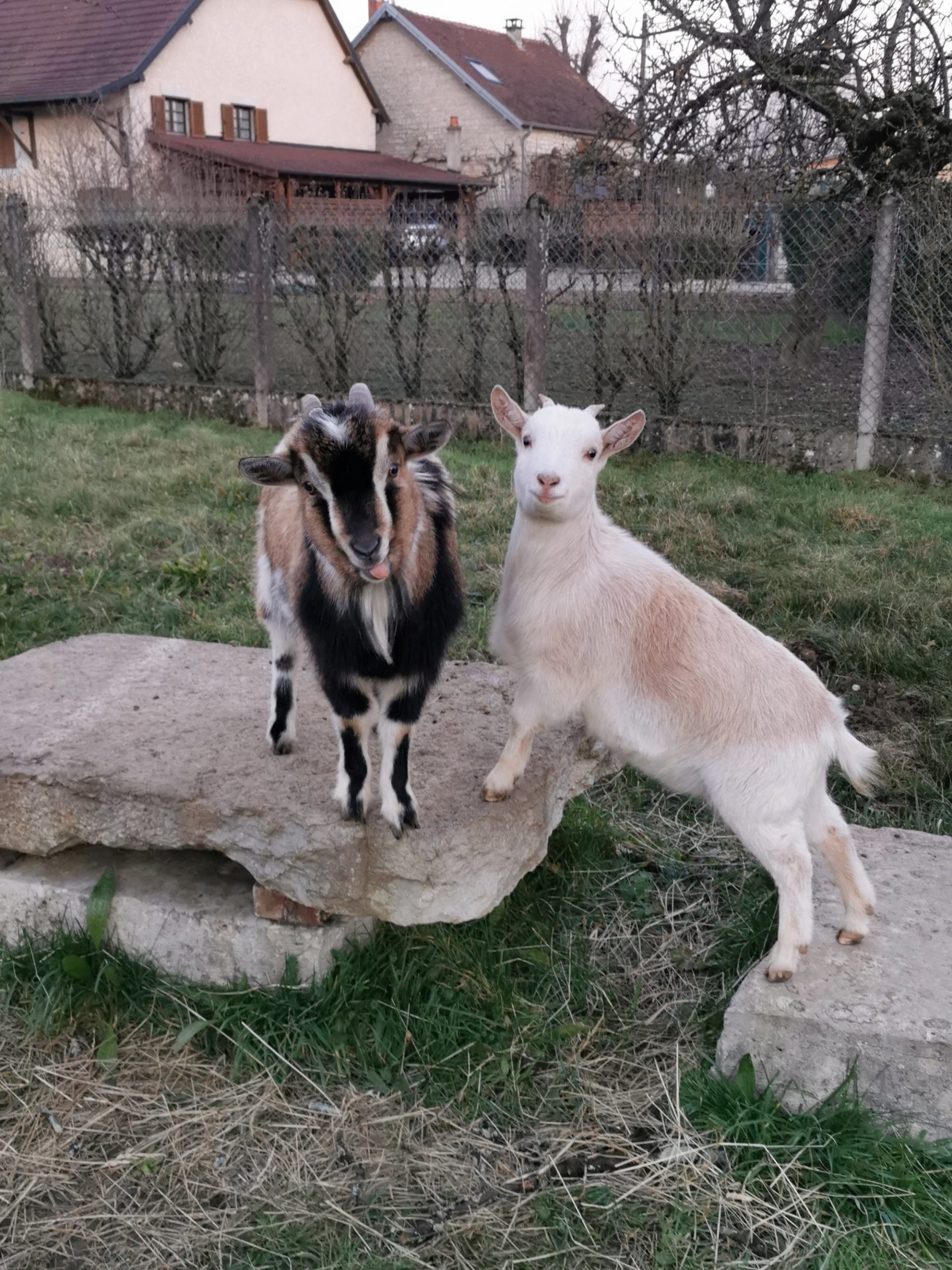 Entrée privative se faisant par une belle terrasse avec vue sur l'enclos de nos chèvres naines et sur le Mont Poupet.