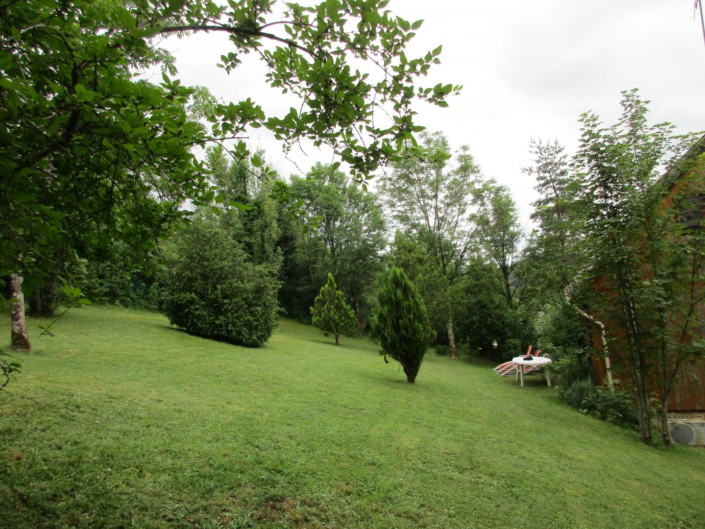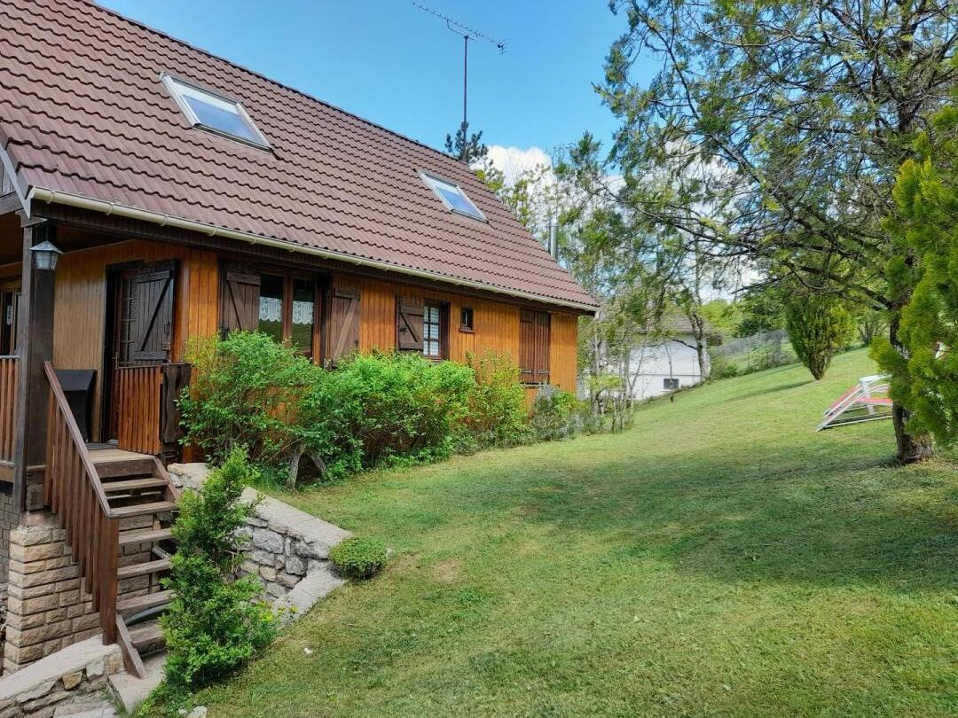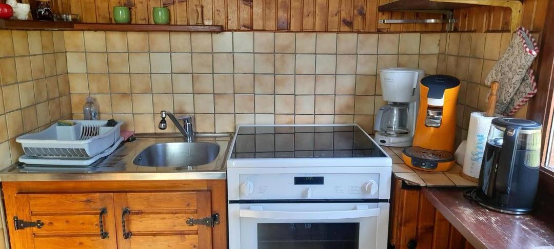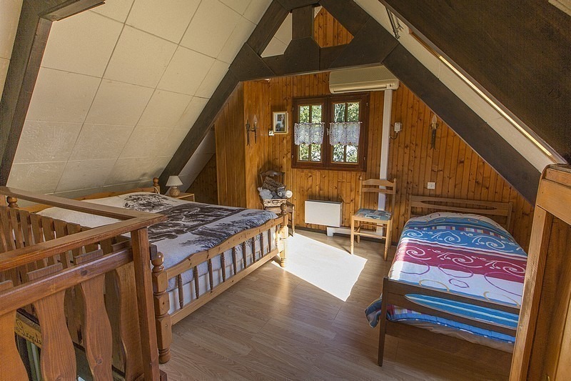 Chalet indépendant. Rez de chaussée garage pour motos et/ou vélos mais pas pour une voiture. A l'étage, coin-cuisine équipée, salon-salle à manger-séjour avec cheminée à foyer ouvert, canapé clic-clac, chambre avec 1 lit 2 place., salle de bain, WC indépendant et en mezzanine ouverte (escalier un peu raide) : 1 lit 2 personnes + 2 lits 1 place. Balcon-terrasse avec belle vue dégagée, terrain attenant clos, salon de jardin, barbecue. Chauffage central. Toutes charges comprises en été. Chauffage hiver : 7€/jour.