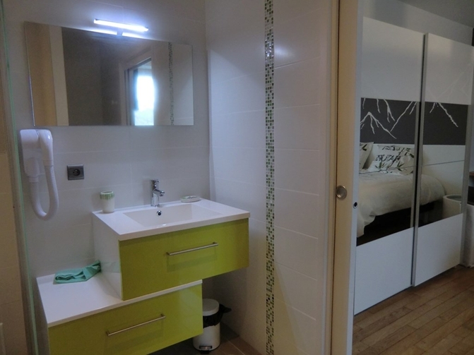 Ses équipements, ses deux salles de bains, sa très belle suite parentale (lit 180*200), sa 2eme chambre (lit 160*200) et sa terrasse avec la vue sur la montagne de la Baume, vous appellent à la relaxation.