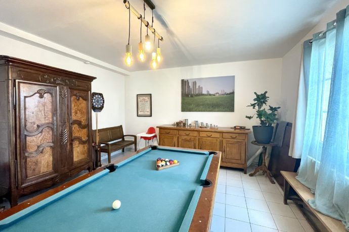 La grande pièce de vie sera idéale pour échanger autour de la cheminée, faire des jeux de sociétés, des repas en famille ou entre amis ou bien encore une partie de billard.