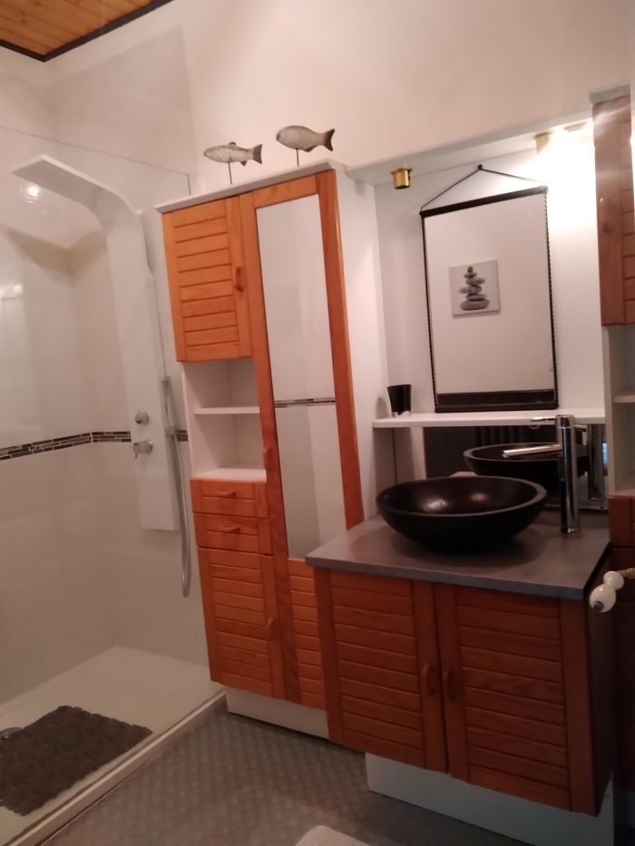 En pleine nature, tout proche d'une cascade (site classé) et d'un canyon, gîte aménagé au rez-de-chaussée d'une ancienne tournerie (énergie autrefois produite par une roue à aubes) Rez-de-chaussée : cuisine intégrée toute équipée, salon-séjour, une chambre avec 1 lit 2 pl attenante à la salle d'eau et WC. A l'étage : 1 chambre avec 1 lit 2 pl et en duplex, 1 lit 2 pl. Chauffage central. Terrasse avec salon de jardin, barbecue, vue sur le torrent et les petits animaux du moulin. Le site est au rendez-vous des marcheurs et amoureux de la nature.