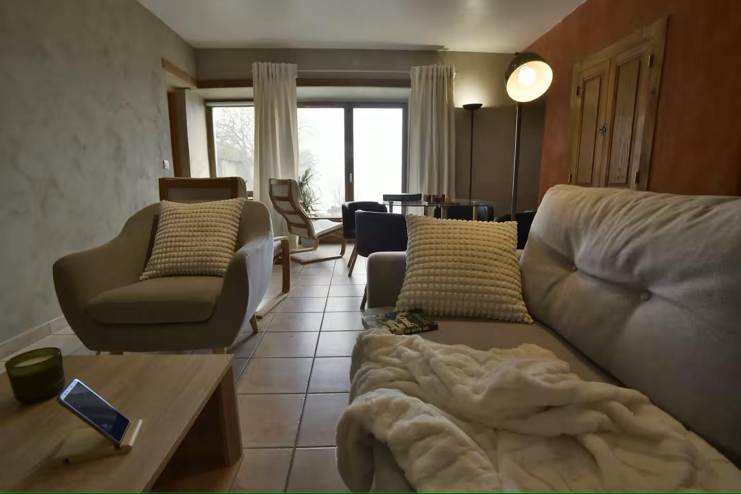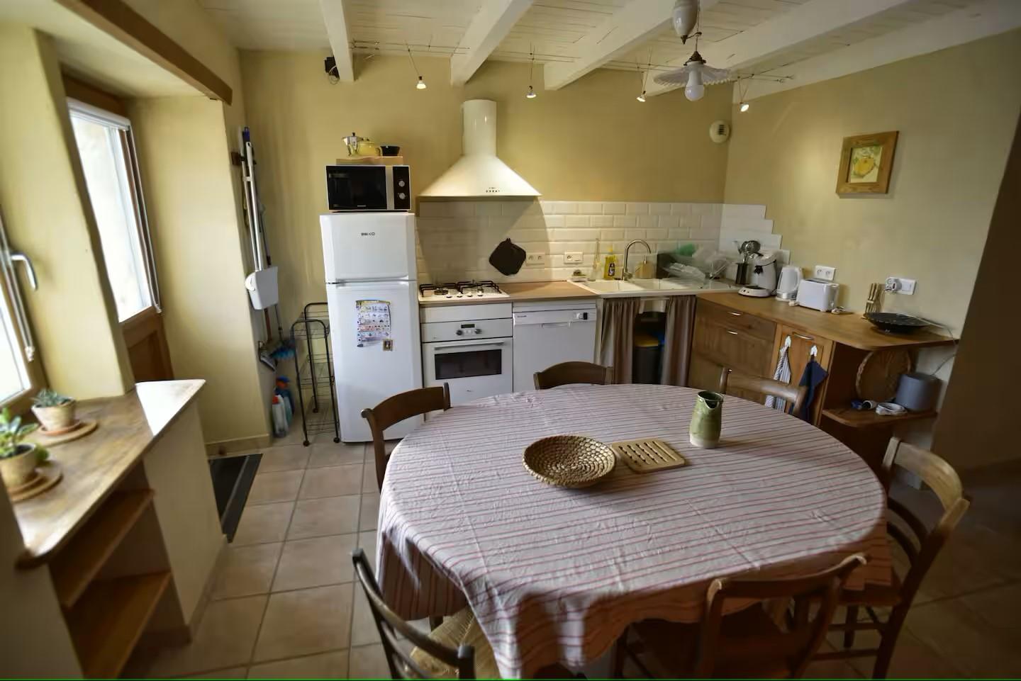 Sébastien vous accueille dans cette ancienne ferme Jurassienne qu'il a rénové durant de nombreuses années en respectant au mieux son architecture et ses matériaux. La pierre, le bois, et différents enduits à la chaux offrent une ambiance authentique et moderne. Situé au rez-de-chaussée de la maison du propriétaire, de plain-pied, le gîte se compose d'une pièce de vie avec coin cuisine toute équipée, d'un espace salle à manger et d'un coin salon avec canapé, TV, lecteur DVD, d'une chambre avec 1 lit double (140*190) et un lit simple (90*190), d'une chambre avec 2 lits simples (90*190), d'une salle d'eau avec douche et WC. Vous pourrez profiter d'un espace extérieur, situé derrière la maison, aménagé avec salon de jardin et barbecue. Idéalement situé, vous pourrez découvrir le château médiéval qui offre un panorama exceptionnel, et parcourir les nombreux chemins de randonnée au départ du gîte. A Cuiseaux (3 km) ou à Cousance (4,5 km), vous trouverez tous les services utiles : commerces, boulangeries, supermarchés, restaurants, banques, médecins. - Baignade : Louvarel à 9km, Surchauffant à 32 km - Ski nordique : Prénovel à 52 km, Morbier à 72 km Tennis, équitation, sports nautiques...