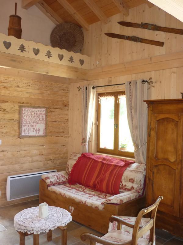 Gîte indépendant d'une capacité de 2 à 6 pers., aménagé avec des matériaux naturels garantissant un air intérieur de haute qualité. Au RDC: hall d'entrée, pièce à vivre avec salon, salle à manger, coin cuisine et cellier. Ch1: 1lit 2pl(160), Ch2: 2lits 1pl, salle d'eau, wc ind. A l'étage: mezzanine avec coin salon, lecteur dvd, coin d'eau + WC. Terrain attenant, vue dégagée. 2 terrasses(dont une abritée) avec salon de jardin et barbecue. Abri voiture. Draps et linges de toilette fournis gratuitement. Lits faits à l'arrivée. Loc. en mid-week possible.