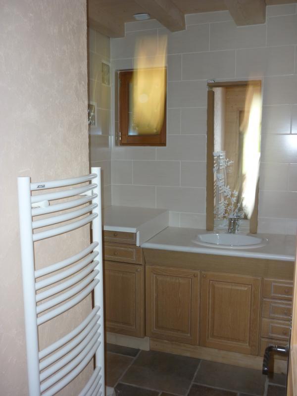 Gîte indépendant d'une capacité de 2 à 6 pers., aménagé avec des matériaux naturels garantissant un air intérieur de haute qualité. Au RDC: hall d'entrée, pièce à vivre avec salon, salle à manger, coin cuisine et cellier. Ch1: 1lit 2pl(160), Ch2: 2lits 1pl, salle d'eau, wc ind. A l'étage: mezzanine avec coin salon, lecteur dvd, coin d'eau + WC. Terrain attenant, vue dégagée. 2 terrasses(dont une abritée) avec salon de jardin et barbecue. Abri voiture. Draps et linges de toilette fournis gratuitement. Lits faits à l'arrivée. Loc. en mid-week possible.