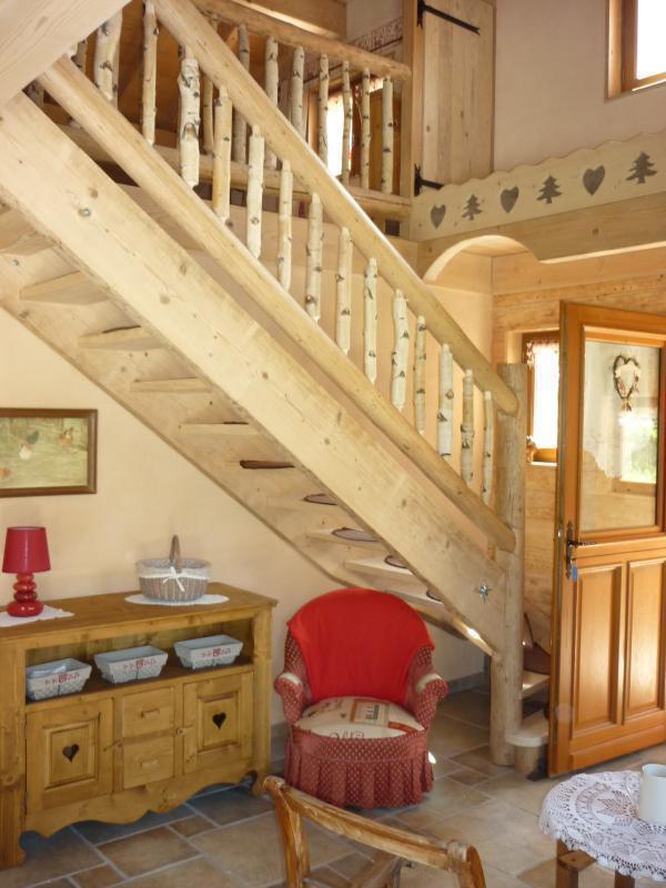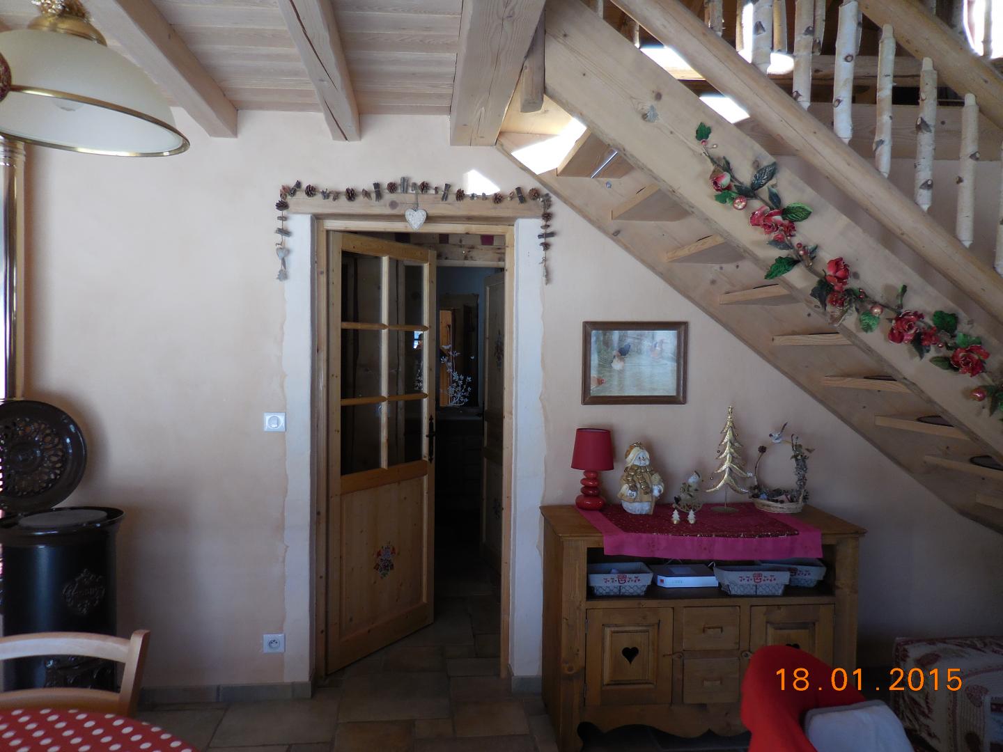 Gîte indépendant d'une capacité de 2 à 6 pers., aménagé avec des matériaux naturels garantissant un air intérieur de haute qualité. Au RDC: hall d'entrée, pièce à vivre avec salon, salle à manger, coin cuisine et cellier. Ch1: 1lit 2pl(160), Ch2: 2lits 1pl, salle d'eau, wc ind. A l'étage: mezzanine avec coin salon, lecteur dvd, Ch3: 1lit 2pl(160) et 2lits 1pl suppl, coin d'eau + WC. Terrain attenant, vue dégagée. 2 terrasses(dont une abritée) avec salon de jardin et barbecue. Abri voiture. Draps et linges de toilette fournis gratuitement. Lits faits à l'arrivée. Loc. en mid-week possible. Hors saison, tarifs variables en fonction du nombre de personne.