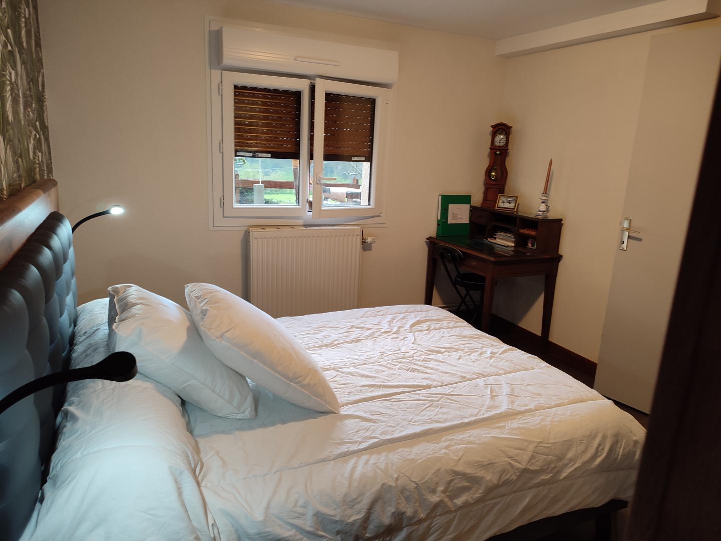 Gîte au RDC situé en plein cœur du Jura. De nombreux sites touristiques s'offrent à vous : cascades, gorges, lacs, sentiers de randonnée,... Le gîte se compose d'une pièce à vivre (cuisine avec espace repas), une chambre avec 1 lit 140, une salle de bain (baignoire) avec wc fermé. Vous pourrez profiter de la vue sur la nature environnante depuis le salon de jardin situé devant le gîte (salon de jardin et barbecue). Terrain attenant non clos à votre disposition. Possibilité de location de draps au tarif de 13 euros. Les propriétaires disposent également d'un autre gîte pour 5 personnes à 4 km (G1836).