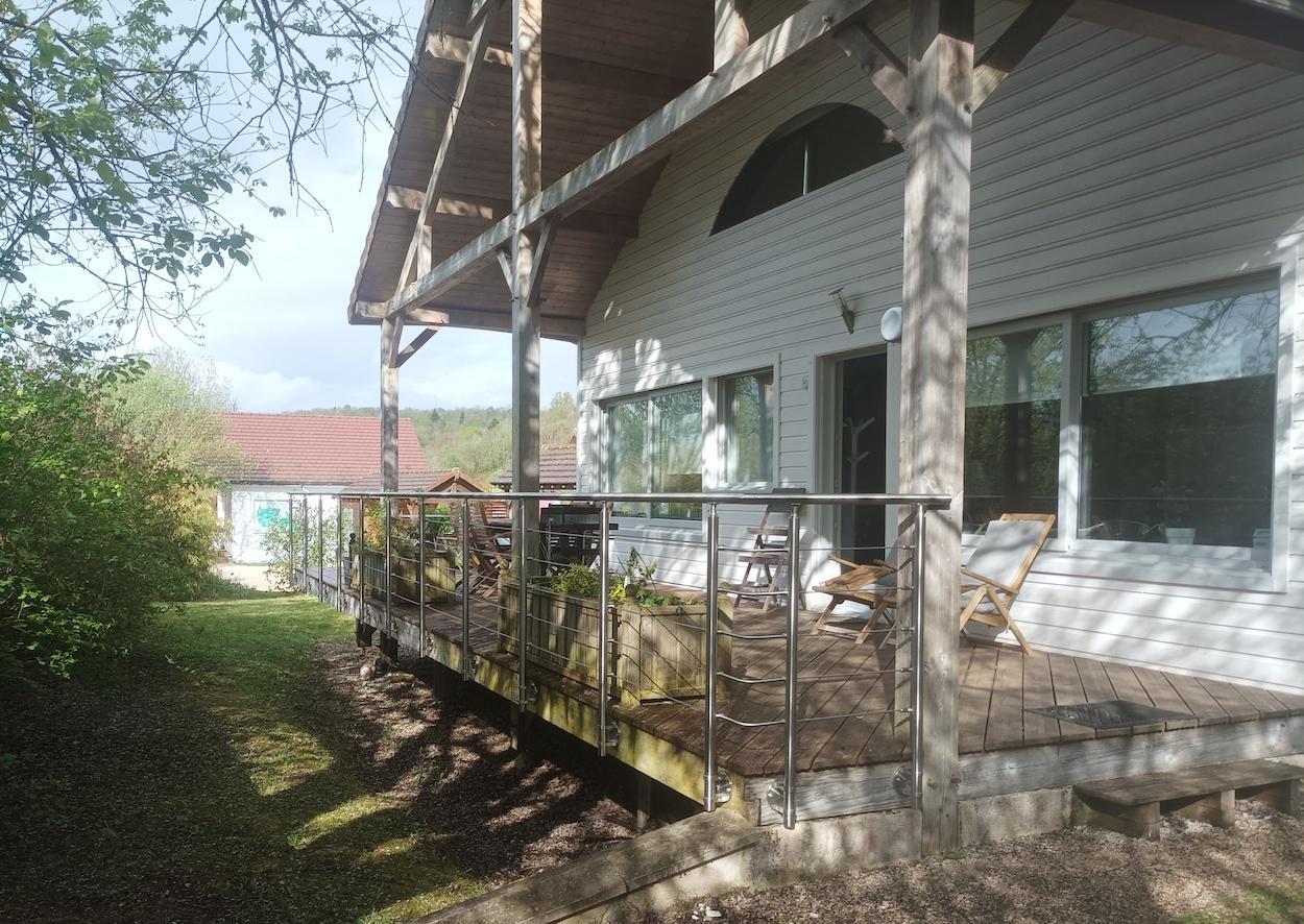Venez passer vos prochaines vacances dans ce chalet situé à 10 minutes à pied du lac de Chalain. Au rez-de-chaussée, pièce de vie lumineuse avec cuisine toute équipée, coin salon avec poêle à bois (1 sac fourni gratuitement) et TV, une chambre avec 1 lit double (140*190), une chambre avec 2 lits simples (90*190), une salle d'eau avec douche et WC. A l'étage une mezzanine avec coin nuit équipé d'un lit double (140*190) et espace salle de jeux avec baby-foot, jeux et livres. Côté extérieur, vous pourrez profiter d'une grande terrasse abritée avec salon de jardin, transats et plancha. Idéalement situé pour la découverte de la région des lacs : belvédère des 4 lacs à la Chaux du Dombief, cascade du Hérisson, vous pourrez également goûter aux spécialités fromagères en vous rendant dans une fruitière ou encore partir à la découverte des plus beaux villages de France (en moins de 30 minutes) : Baume les Messieurs et Chateau-Chalon.