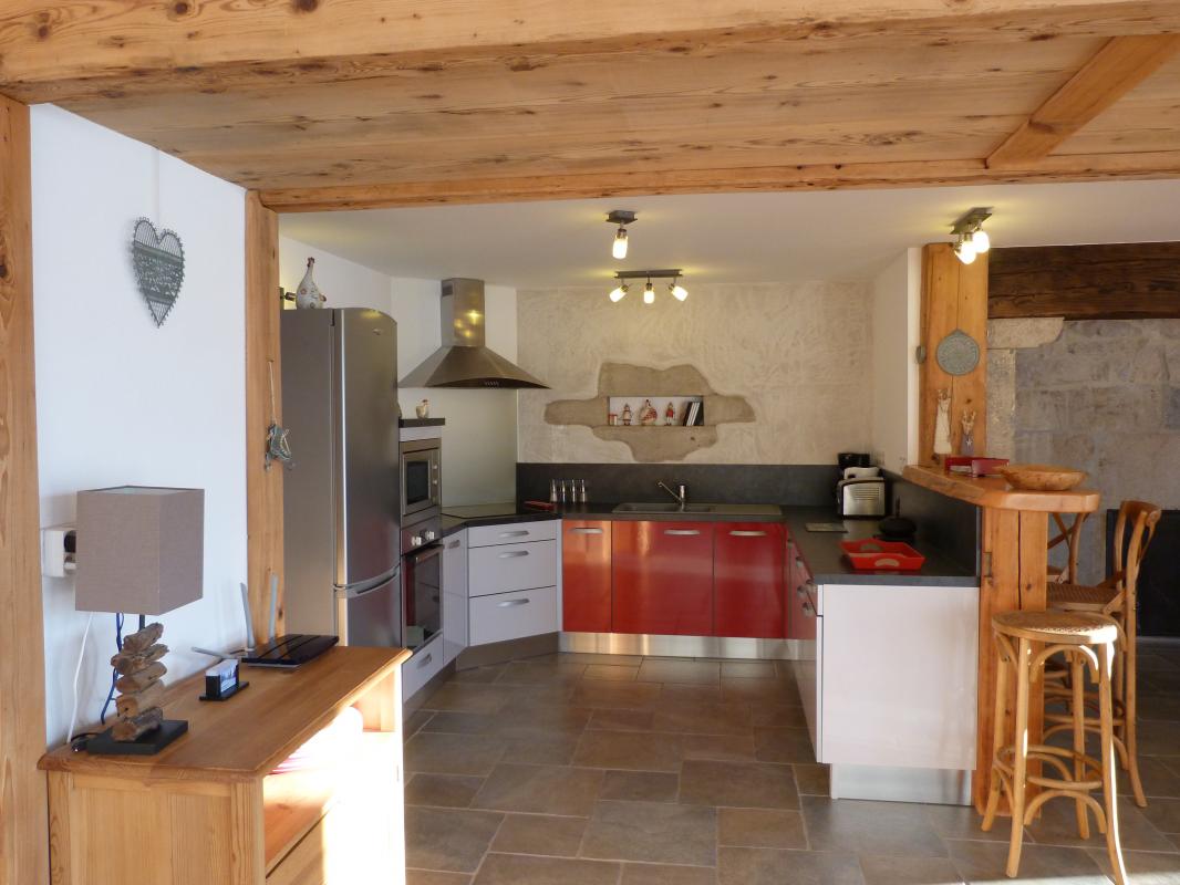 Magnifique gîte au rez de chaussée d'une maison entièrement rénovée avec goût et authenticité. Spacieux, fonctionnel et très confortable avec vue panoramique sur les Monts Jurassiens. Situé en pleine nature, ce gîte est idéal pour se ressourcer. Vous pourrez profiter d'une cuisine intégrée toute équipée ouverte sur un grand salon (poêle à bois) et salle à manger, deux chambres, dont l'une est équipé d'un lit 2 places (160x200) et l'autre de 2 lits 1 place, d'une salle de bains avec douche et baignoire, (wc indépendants), d'un cellier avec sèche-linge. Terrain attenant non clos avec salon de jardin, barbecue. Wifi. Toutes charges comprises. Sentiers de rando, VTT, ski de fond au départ du gîte. A quelques kms de la Suisse. Caution ménage : 150€