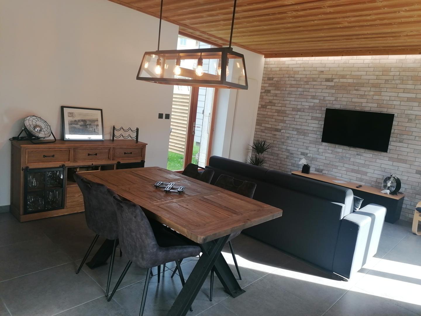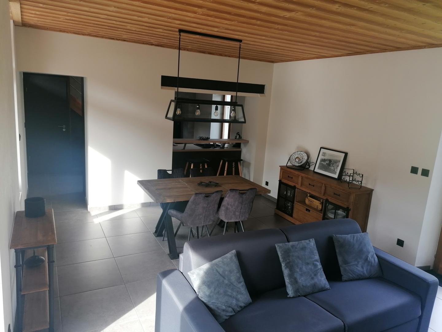 En plein cœur du village, cette maison mitoyenne à celle des propriétaires se compose au RDC d'une pièce de vie avec salon équipé d'un canapé convertible (1 ou 2 personnes supplémentaires acceptés sur demande) et d'une TV, d'une cuisine toute équipée, d'une buanderie, et d'un WC indépendant. A l'étage 2 chambres : l'une avec 2 lits simples (90*200) et une avec un lit double (160*200) et une salle d'eau avec douche à l'italienne et WC Côté extérieur, vous pourrez profitez d'un salon de jardin et d'un barbecue. Idéalement situé, vous pourrez accéder à pied à tous les commerces (restaurant, supermarché, fromagerie, bureau de tabac...)Les sentiers VTT, ski de fond et raquettes partent depuis le gîte et un fil neige pour l'apprentissage du ski de descente se trouve à 2 kms. Il est également possible de pêcher sur place Le parc polaire de Chaux Neuve, les gorges de la Saine et de la Langouette se trouvent à une dizaine de minutes.