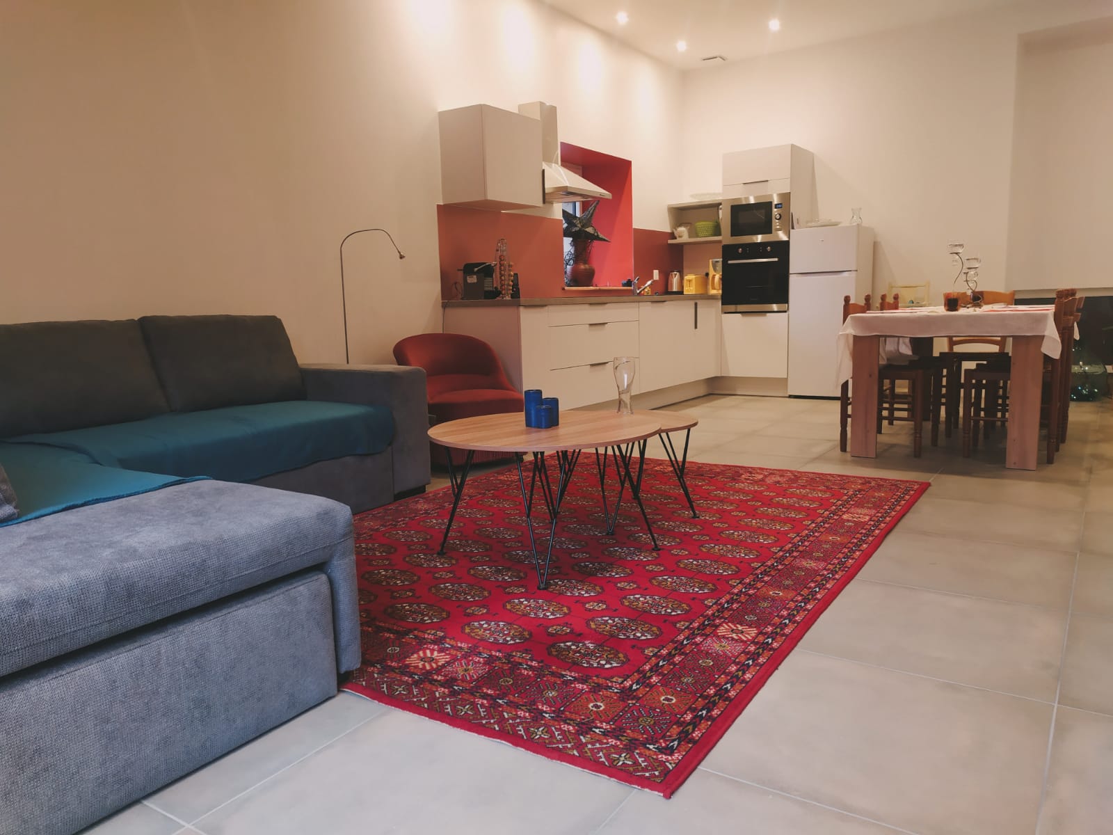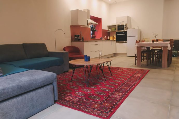 Petit déjeuner compris. Une grande pièce de 44 m² avec une cuisine équipée, ouverte, une salle à manger avec TV, une baie vitrée coulissante donnant sur la petite terrasse. proche des thermes de Lons-le-Saunier, Baumes-les-Messieurs, du vignoble, randos.