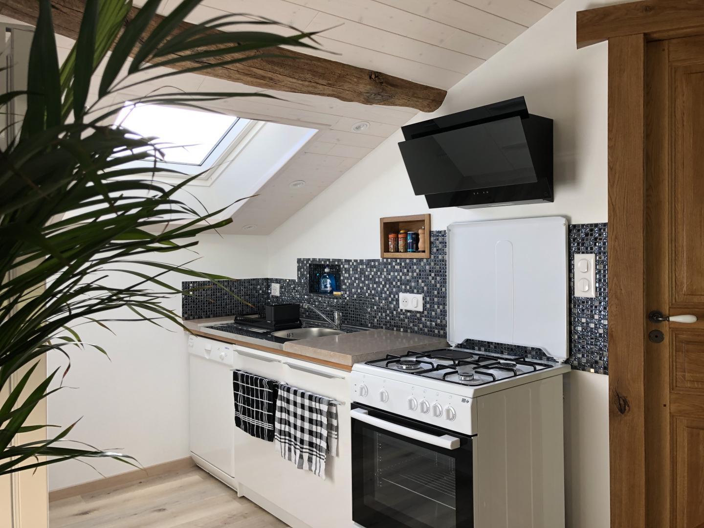 Situé dans un hameau de 50 âmes, ce gîte est situé dans une maison mitoyenne à celle des propriétaires. Néanmoins très indépendant car son accès se fait par un escalier en pierre situé à l'arrière de la maison. Mélange d'ancien et de contemporain, ce tout nouveau gîte très bien équipé, a été conçu par son propriétaire avec un grand soin du détail. Les pierres et poutres apparentes de cette ferme confèrent à cet hébergement beaucoup de charme et une atmosphère chaleureuse. Elle se compose d'une pièce de vie lumineuse avec cuisine toute équipée, salon avec TV, poêle à granulés (sacs fournis gratuitement) et un canapé, d'une chambre avec 1 lit double 140*190 et d'une salle d'eau avec douche et WC. Une loggia aménagée avec 2 transats, propice à la lecture et à la détente, avec vue sur le vaste pré des chevaux vous offre un cadre rêvé pour vous ressourcer en pleine nature. Côté extérieur, vous pourrez profiter d'une terrasse équipée d'un salon de jardin et d'une plancha. Abri pour voiture et/ou motos. Idéalement situé pour les amoureux de randonnées cyclo, pédestre et équestre. Vous pourrez également partir à la découverte des forets, des lacs et cascades et vous rendre à Bourg-en-Bresse en 40 minutes pour visiter son célèbre monastère royal de Brou. De nombreux producteurs locaux et la fromagerie de Nantey se situent non loin, de quoi émoustiller vos papilles!
