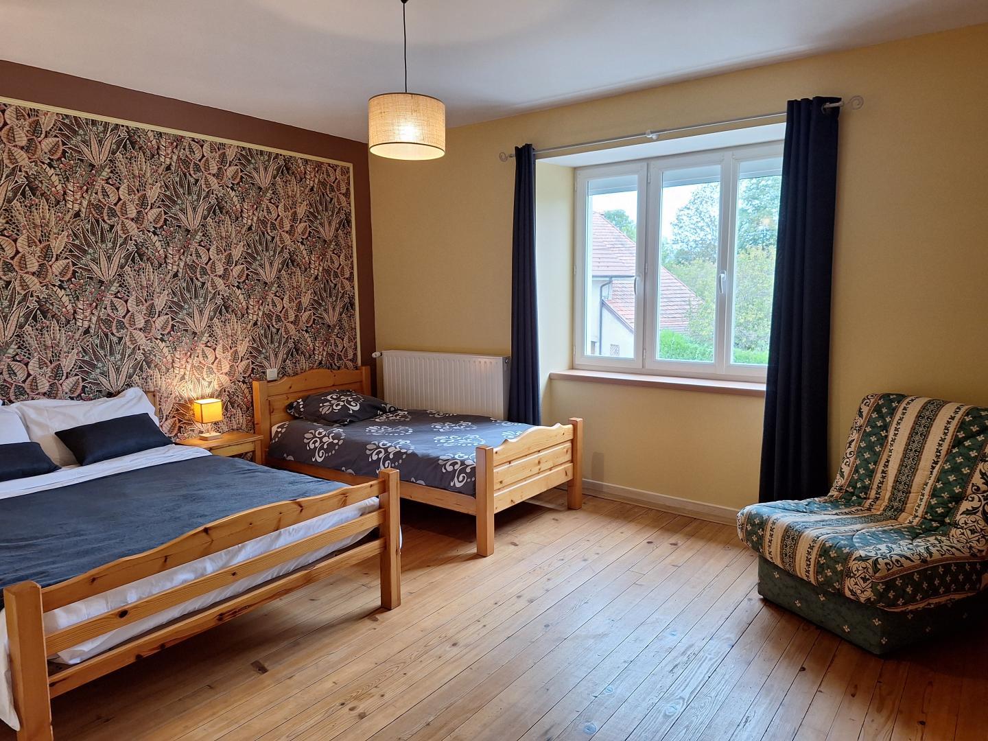 Cette maison mitoyenne sera le lieu idéal pour vos prochaines vacances : elle se compose au rez-de-chaussée d'une cuisine toute équipée, d'un espace salle à manger et d'un coin salon avec TV, d'une salle d'eau et d'un WC indépendant. A l'étage, 2 chambres, l'une avec 1 lit double 140*190 et la seconde avec 1 lit double 160*200 et un lit simple 90*190, un WC indépendant avec lavabo. Pour votre plus grand confort, les lits seront faits à votre arrivée et les serviettes sont fournies. Côté extérieur, vous pourrez profitez d'une terrasse close avec salon de jardin, barbecue et transats. Idéalement située, à proximité du lac de Chalain et de la région des lacs, vous pourrez également profiter des nombreux sentiers de randonnées situés à proximité du gîte.