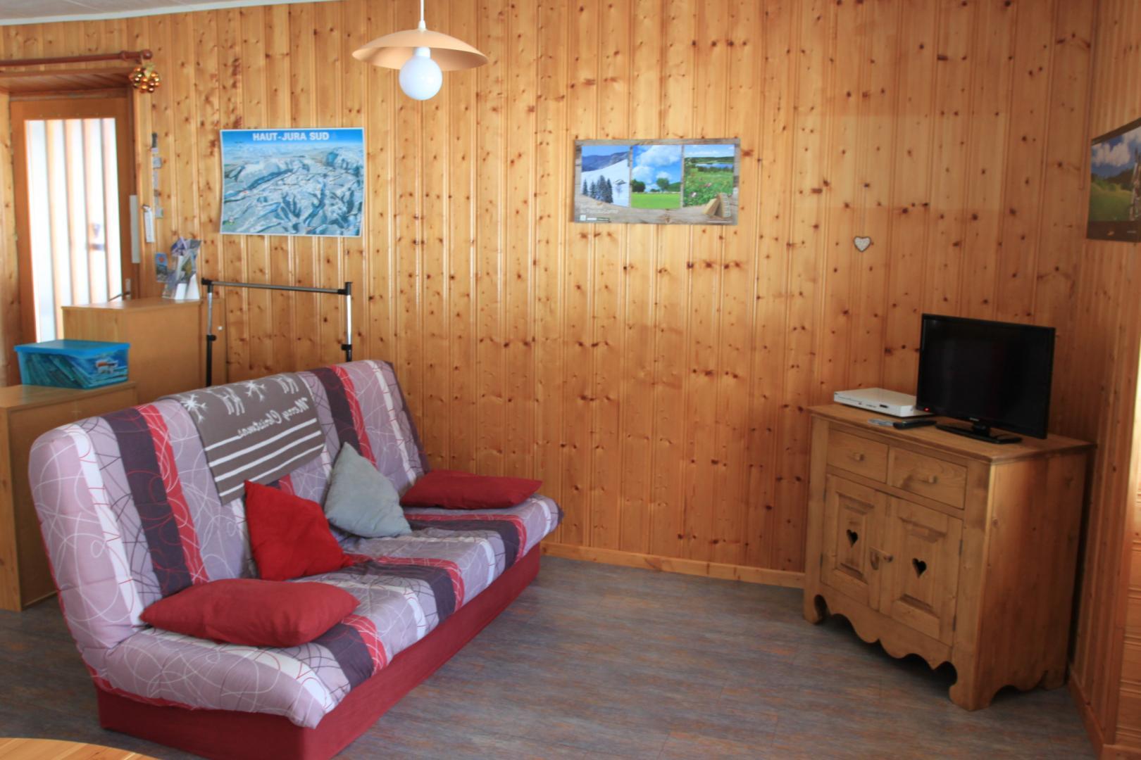 Logement à l'étage de la maison du propriétaire, située au cœur du Parc Naturel régionale du Haut Jura, dans un site naturel préservé: Les Hautes Combes du Jura, en pleine nature, au calme avec vue dégagée sur le paysage. Cuisine, séjour-salon (canapé convertible), salle d'eau, wc indépendant, 2 lits 1 place superposés et 1 chambre avecn1 lit 2 places, lit et chaise bébé. Salon de jardin, barbecue, terrain attenant non clos. Chauffage central. Toutes charges comprises. Local à skis et vélo. Exploitation agricole à 2km, visitable. Accès facile. Documentation, cartes, topo guide à dispo. Parking privé sur place.