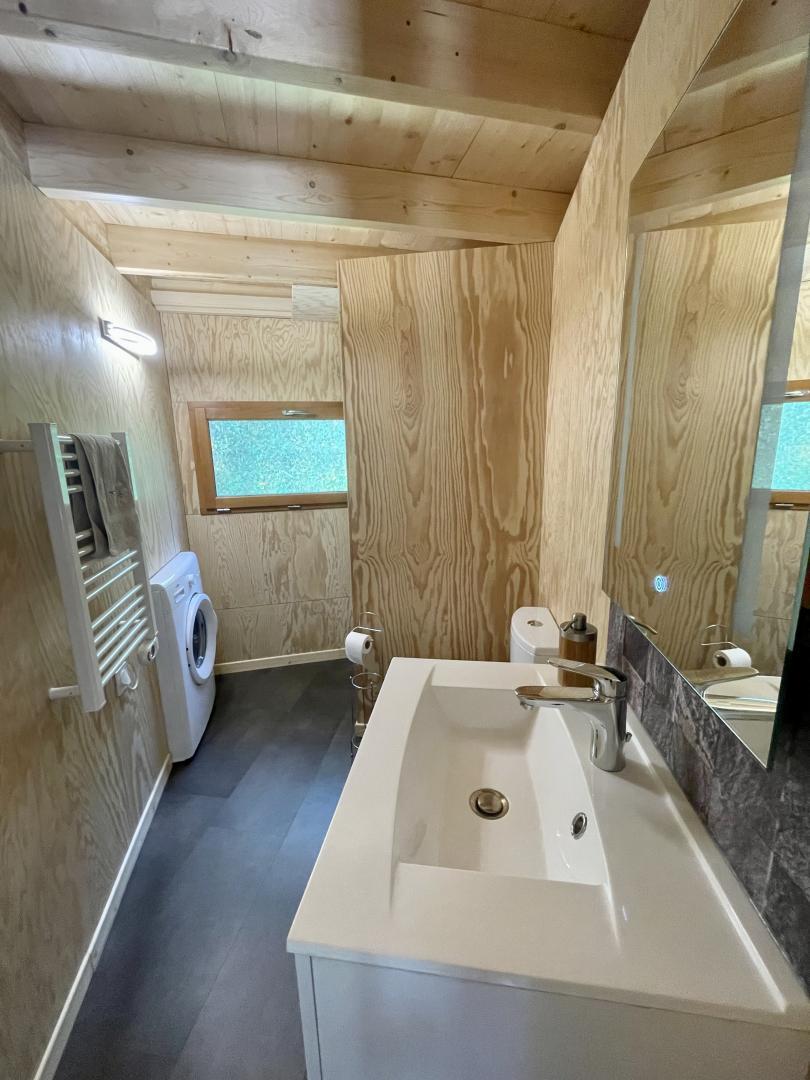 Au cœur du Jura, dans un écrin de verdure, venez savourer détente, repos et relaxation pour vos vacances en couple ou en famille. Cette construction en bois atypique entourée d'arbre provient du savoir-faire d'un constructeur local avec du bois du Jura. Elle se compose d'une pièce de vie avec cuisine toute équipée et salon, d'une chambre avec un lit double (140*190), d'une salle d'eau avec douche et WC. Les 2 autres couchages (2 lits simples)sont situés en mezzanine (hauteur sous plafond maximale de 1.40m) Côté extérieur, vous pourrez profiter d'une terrasse privative avec salon de jardin et barbecue. En commun avec d'autres hébergement, un parc arboré de 2 hectares, agrémenté de la piscine familiale mise à disposition (en saison estivale), d'un chalet-sauna nommé Braza, et d'un bain nordique. Séance de magnétisme sur place sur réservation. Idéalement situé pour partir à la découverte de Poligny, capitale du Comté, d'Arbois réputée pour son vin, ou de la ville thermale de Salins les Bains et de sa Grande Saline, classée au patrimoine mondial de l'UNESCO. De nombreuses activités de plein air vous attendent également : randonnées, découverte des lacs et cascades ou encore accrobranche. Possibilité de réserver une deuxième Mignonette (Coccinelle - Référence G6016) - Animal sur demande