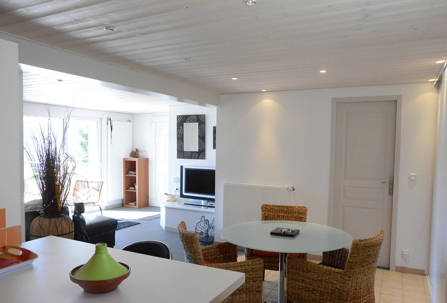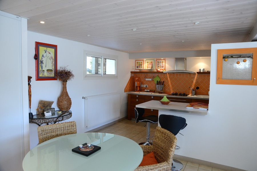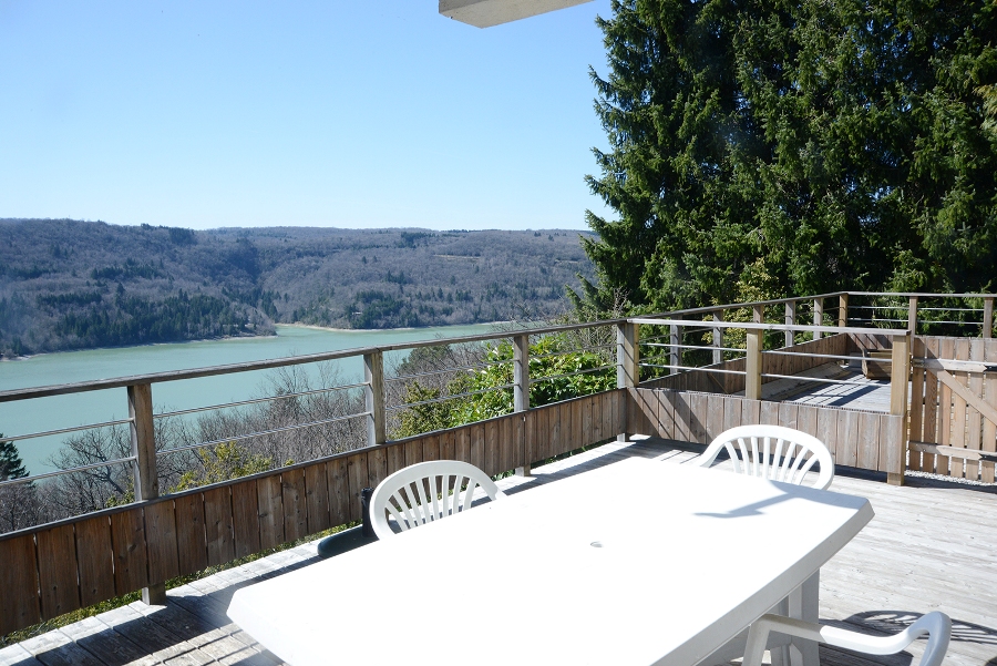 Logement indépendant au RDC entièrement rénové, mitoyen avec un autre gîte. Splendide vue sur le lac de Vouglans. Salon avec canapé convertible (1 couchage supplémentaire possible) salle à manger avec belle cuisine intégrée toute équipée, 1 chambre avec 1 lit 2 pl, sdb avec douche, Wc indépendant. Vous pourrez profiter de la vue imprenable sur le lac directement depuis la terrasse de 28 m². Salon de jardin, barbecue et local en commun pour le lave-linge avec le gîte de l'étage. Bois fourni gratuitement.