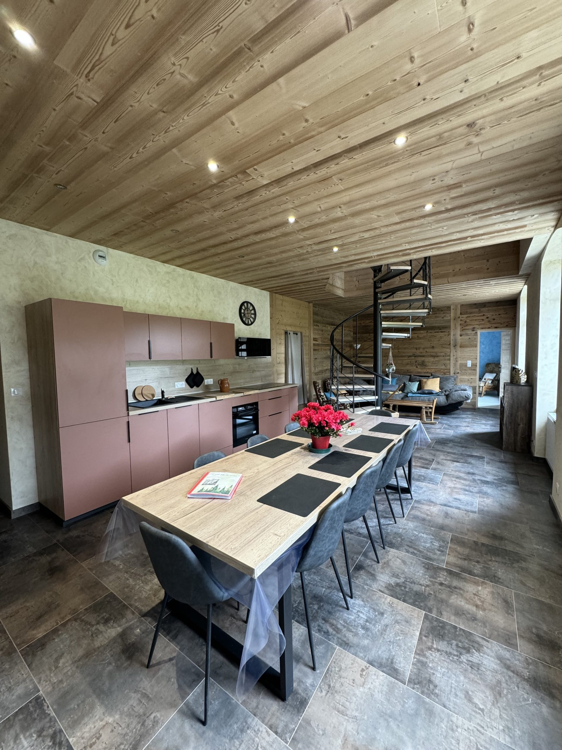 Notre gîte a été conçu pour répondre à vos besoins. Vous pourrez profiter d’un espace de vie très agréable. Une grande pièce à vivre, salon, salle de bains avec douche et toilettes, une chambre, à l’étage deux chambres avec lit deux personnes et une chambre avec deux lits d’une personne, une salle de bains avec baignoire.