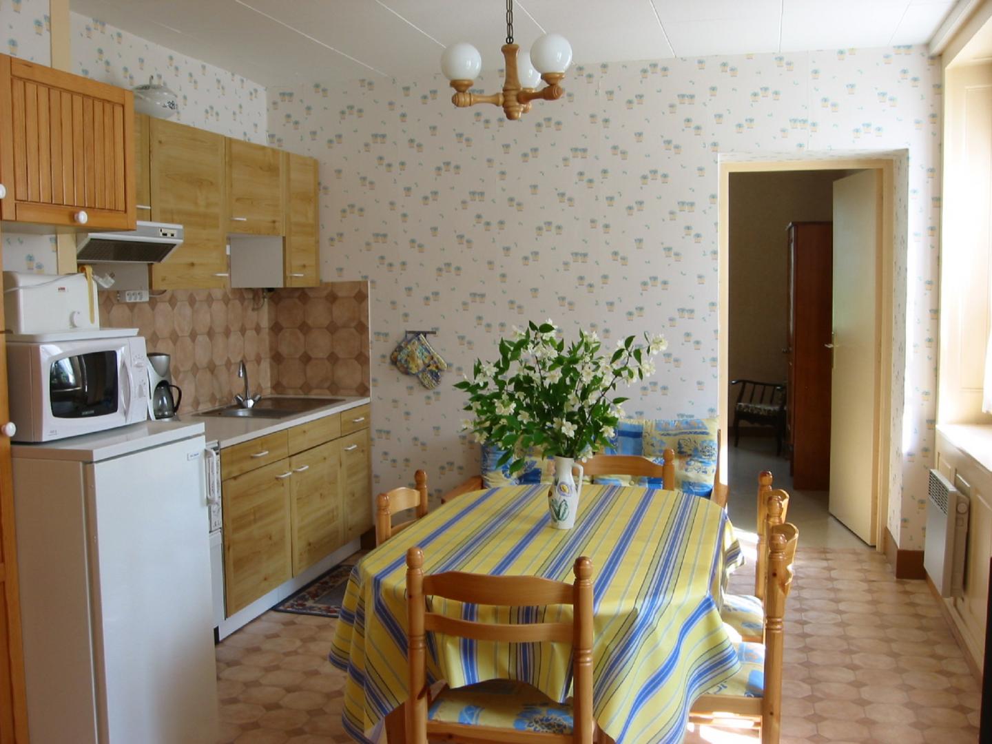 Appartement confortable au premier étage de la maison des propriétaires, où se trouve également un autre gîte, idéalement situé à proximité des pistes de ski et de nombreux sentiers de randonnée. Pièce à vivre avec cuisine et espace détente (canapé et télévision écran plat). Une première chambre équipée d'un lit de 140cm, la seconde 3 lits de 90cm dont deux lits superposés. Salle d'eau avec douche et lavabo double vasques, wc séparés. Vaste terrain attenant non clos, avec salon de jardin et barbecue. Garage privatif fermé. Accueil des animaux : 1 maximum sur demande. Parking sur place - volets dans les chambres