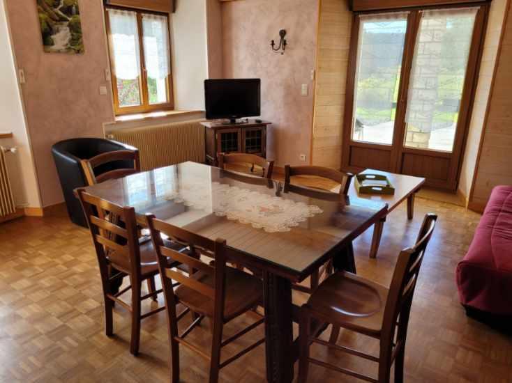 Situé au coeur du Parc Naturel du Haut Jura, cette vaste maison au charme d'antan, abrite un gîte très confortable. Cette ancienne ferme de 1698 rénovée vous permettra de passer un agréable séjour à proximité de la nature. Pouvant abriter de 6 à 8 pers, le gîte se compose au RDC d'une cuisine entièrement équipée, d'un salon-séjour, d'une salle de bain et un WC indépendant. A l'étage vous pourrez y retrouver :CH1: 1 lit 140, 1 lit 90 et une Salle de Bain (wc indépendants) ,et Ch2: 1 lit 140, 1 lit 90 .Sur la terrasse équipée d'un salon de jardin avec barbecue, vous pourrez y contempler un agréable paysage de verdure au calme de la campagne.