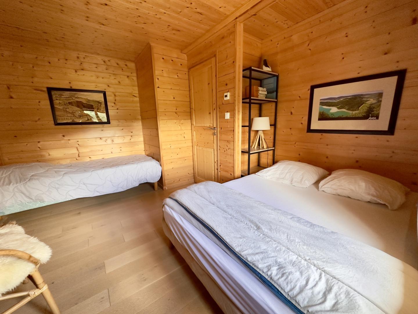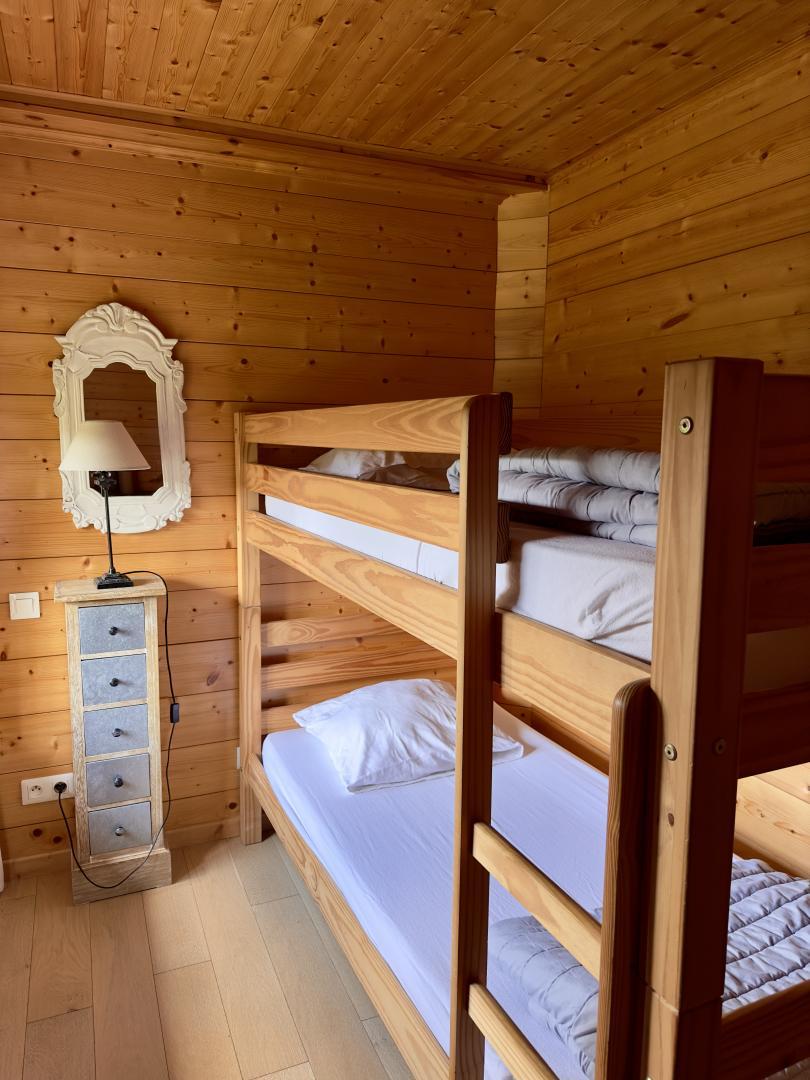 Chalet au charme original et design au centre du village de Châtelneuf, sur l'axe Champagnole-Genève. Vous vous trouvez dans une région calme où chaque saison a ses attraits : ski, randonnée, baignade, cascades, mycologie. Votre location de vacances, entièrement rénovée et tout confort, dispose d'une cuisine équipée, coin salon avec poêle à bois et accès à une vaste terrasse extérieure exposée au Sud. Au rez de chaussée, vous trouverez une chambre avec 1 lit 2 places, une chambre avec 2 lits superposés, salle de bain, wc indépendant. Cour et jardin en partie clos, abri voiture et appentis. Animaux non admis. Option ménage : 70€. Fourniture de bois : 5€ le casier (un panier offert). Merci d'apporter vos draps et linge de toilette. A 10 km : courses, baignade, randonnée, VTT, pêche, équitation, tennis. A 20 km : canoé, golf, ski de fond. A 50 km : ski alpin, via ferrata