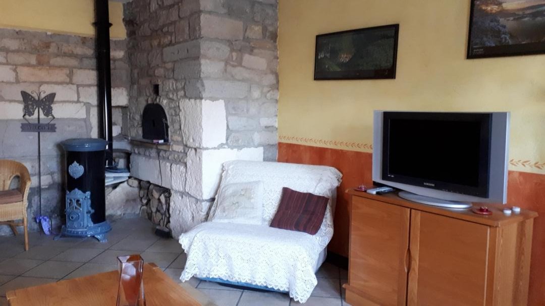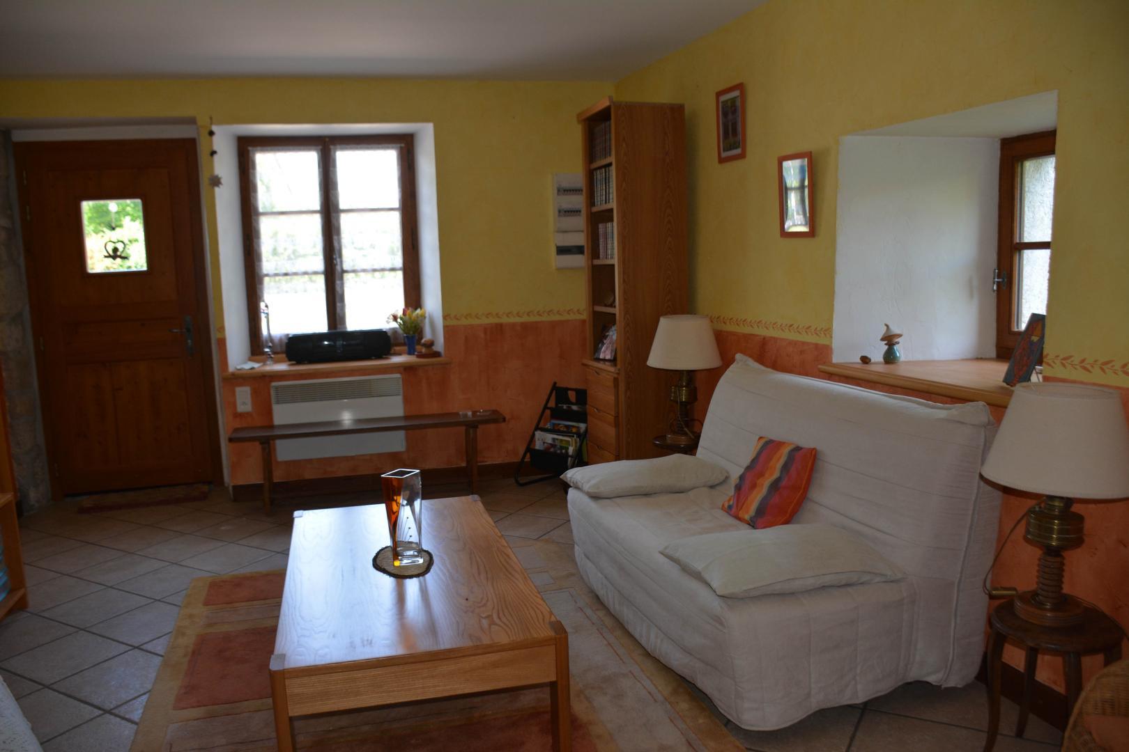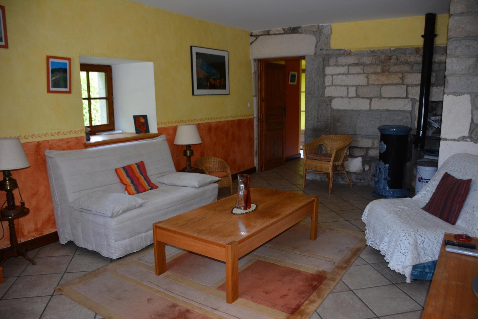 Maison mitoyenne située à proximité des lacs et cascades. Au RDC: cuisine-séjour, salon, canapé convertible, poêle à bois, tv écran plat, lecteur DVD, poste HiFi. A l'étage: ch1: 1 lit 2 pl, 1 lit 1 pl, Mezzanine, petit coin chambre d'enfant avec 2 lits 1 pl superposés, lit bébé à disposition, salle d'eau, WC indépendant, terrain attenant clos, barbecue, salon de jardin, cour. Chauffage électrique et bois. (le bois pour le poêle est facultatif et en supplément). Jeux d'enfants. Location de draps et de serviette de toilette (1.50€ pièce), forfait ménage. Equipé WIFI.