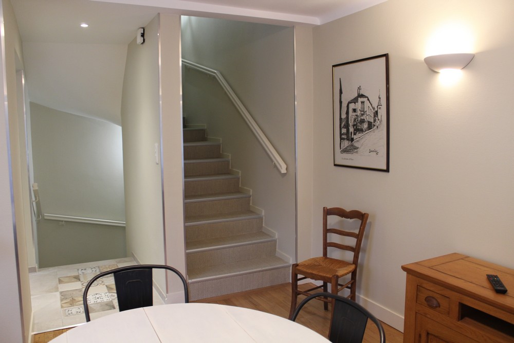 En plein centre de la ville thermale de Salins les Bains, au calme avec une vue dégagée sur la rivière, à deux pas des Thermes, très beau triplex tout confort entièrement rénové avec goût, modulable de 2 à 5 personnes. Au rez-de-chaussée, hall d'entrée, chaufferie (machine à laver) et wc indépendants. Au premier étage, belle cuisine équipée ouverte sur le séjour, canapé, TV écran plat. Au 2eme étage : une chambre avec un lit de 160x200cm et une salle d'eau avec douche à l'italienne et wc. Au dernier étage, une chambre avec un lit de 90cm (possibilité d'un autre couchage en 90), et une 3eme chambre avec 1 lit de 160x200cm. Pour votre plus grand confort, les lits seront faits à votre arrivée. Garage privatif fermé à disposition. N'attendez plus pour réserver votre séjour au gîte de la Tour Cicon ! Tarif spécial curistes : 1100 € (2 ou 3 chambres) pour 3 semaines consécutives en juillet/août et 1000 euros (2 ou 3 chambres) pour 3 semaines consécutives en dehors de ces 2 mois