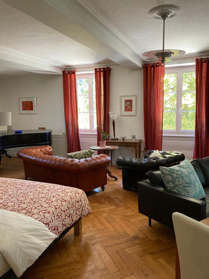 A deux pas de la Bourgogne et à quelques encablures de la très belle ville de Dole, au cœur de ce charmant petit village riche de patrimoine, si vous avez envie de prendre le temps, de vous ressourcer, et de vous dépayser, c'est à la villa Romaine qu'il faut séjourner. Dans ce très beau manoir sont aménagées 3 grandes chambres (dont une suite familiale) dans lesquelles vous pourrez revivre « la vie de château ». La suite du Marquis de 57 m² se compose d'une chambre avec un lit royal King size, une autre chambre ou petit salon avec 2 lits supplémentaires, et une salle de bain commune équipée d'une baignoire. La chambre panoramique qui dispose d'une très grande luminosité avec ses fenêtres sur 3 côtés qui permet un panorama complet sur le parc. Elle se compose d'un lit King size et la salle d'eau est aménagée dans une ancienne tour où le charme d'antan a été conservé puisque revêtue en travertin comme chez les romains. La chambre sous la chouette se compose d'un lit 160x200, et d'une salle d'eau privative Sabine et Joris auront à cœur de vous proposer de copieux petits déjeuner ainsi que les repas de la table d'hôtes (uniquement sur réservation) pour découvrir et apprécier les spécialités régionales. Aux beaux jours, vous pourrez profiter d'un vaste parc arboré aménagé avec un bassin naturel partagé avec les autres hôtes (18*6 et profondeur allant de 1.30 à 1.55) Les propriétaires ont également aménagé deux gîtes indépendants dans l'enceinte de la propriété qui ne devraient pas perturber votre séjour. Une belle adresse à découvrir qui saura vous enchanter.