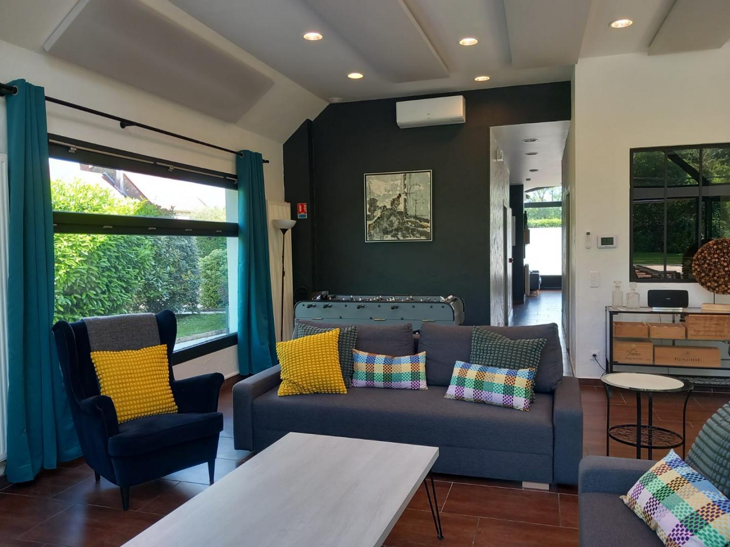 A la limite du Jura et de la Saône et Loire, ce gîte se situe dans une ancienne grange datant de 1850. Entièrement rénovée par les propriétaires pour vous apporter tout le confort moderne, il se compose au rez de chaussée de 2 chambres doubles (lit 140*200) avec télévision connectée, d'une salle d'eau avec douche, d'un WC indépendant, d'une cuisine ouverte entièrement équipée et d'une pièce de vie de plus de 50 m2 avec coin salon aménagé avec 2 canapés convertibles (possibilité d'accueillir 4 personnes sur demande et avec supplément) et TV connectée et d'un coin salle à manger. Pour les moments de détente un baby-foot, un espace bibliothèque, des jeux de société et d'extérieur sont mis à disposition La pièce de vie est entièrement ouverte sur l'arrière du bâtiment sans vis à vis avec accès direct à une terrasse ombragée de 45 m2 L'étage est composé de 2 chambres avec chacune 1 lit double (140*190) avec leur salle de bain privative, espace ouvert ou semi-ouvert (1 baignoire ou 1 douche), télévision connectée. Pour votre plus grand confort, les lits seront faits à votre arrivée, les linges de toilettes sont fournis et le ménage est inclus. Le parking est privé et permet les stationnements longs, Nous acceptons les camping car et nous disposons également d'un espace sécurisé pour les vélos et les motos. Le gîte est situé à mi-chemin de Lons le Saunier(Musée, Parc de Loisirs, Espace thermal, Casino jeux) et de Louhans qui possède l'un des plus beau marché de France. Nous sommes à 5 minutes de la sortie N°8 de L'A39, à 1h de Beaune, Dijon et Besançon, à 1h15 de Lyon et 1h30 de Genève. Les premières pistes de ski sont à 45 minutes et la région des lacs à 30 minutes. La gîte est à 200 mètres de la "Voie Bressanne" entièrement piétonne qui permet de relier Lons le Saunier à Châlon sur Saône.