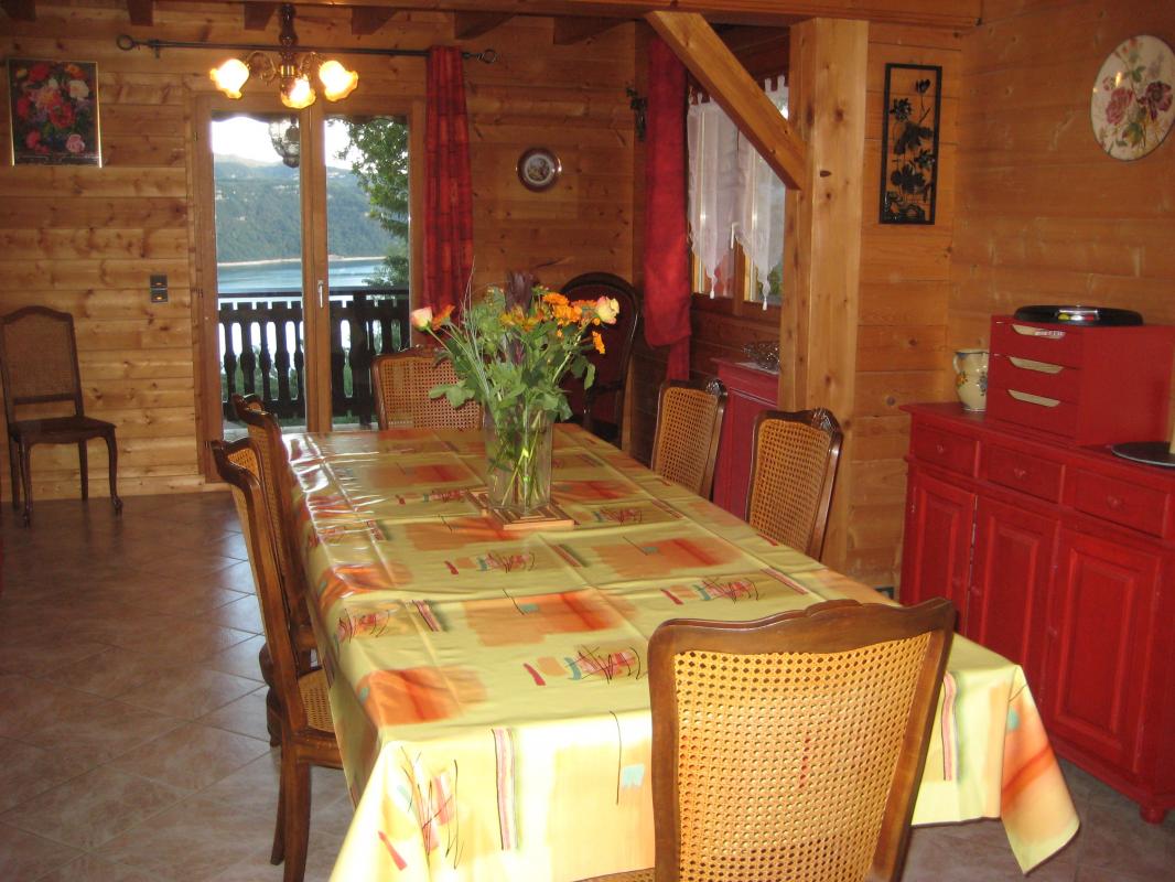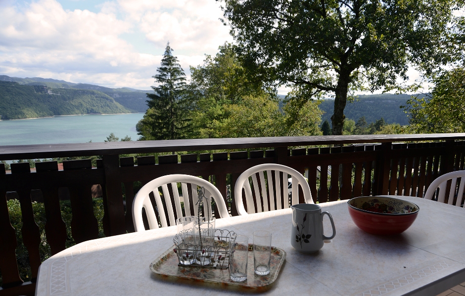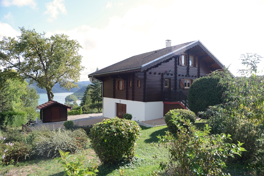 Très beau chalet bois avec vue imprenable sur le Lac de Vouglans. Accessible par un petit escalier extérieur de huit marches, vous disposerez d'une grande pièce à vivre avec salon (belle cheminée) donnant sur un vaste balcon avec salon de jardin et barbecue. Cuisine intégrée indépendante, 1 chambre avec un lit 2 places, salle de bains, WC indépendant. A l'étage, une chambre avec un lit 2 places (160), 1 chambre avec 2 lits 1 place et une autre avec 1 lit 1 place, salle d'eau avec douche et WC indépendant. Parking privé sur place. Lits équipés de couettes et faits à l'arrivée. Possibilité de 2 couchages supplémentaires pour des enfants (dans ce cas prévoir des draps). En sous-sol local de rangement pour vélos, skis ou barque de pêche. Électricité comprise du 03 mai au 15 octobre, bois fourni gratuitement. Merci d'apporter votre linge de toilette. Un gite idéal pour un séjour en famille ou entre amis afin de profiter du calme et de la sérénité de ce paysage exceptionnel.