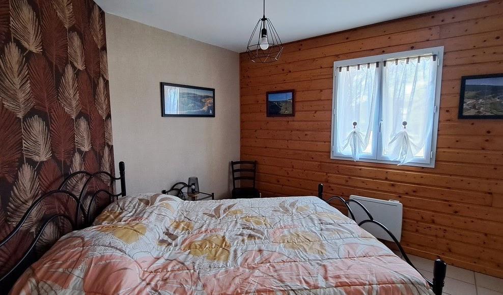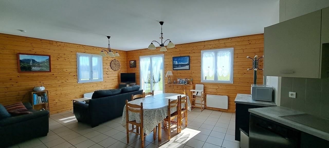 Maison indépendante, séjour-salon, lecteur DVD, coin-cuisine intégré, réfrigérateur-congel, salle d'eau, WC indépendant, ch1: 1 lit 2 pl (160x200), 1 lit bébé, ch2: 1 lit 160x200, ch3: 2 lits 1pl, chauffage électrique, terrasse, salon de jardin, barbecue, terrain entièrement clos. Grand terrain multi-jeux sur place. Idéalement situé sur le 1° plateau dans un petit village de caractère, au départ de nombreuses randonnées, et autres activités variées. Équipement bébé. Charges non comprises. Pour les chèques vacances voir directement avec le propriétaire. Taxe de séjour en sus. (Pour l'accueil de plus d'un animal se renseigner auprès du propriétaire).