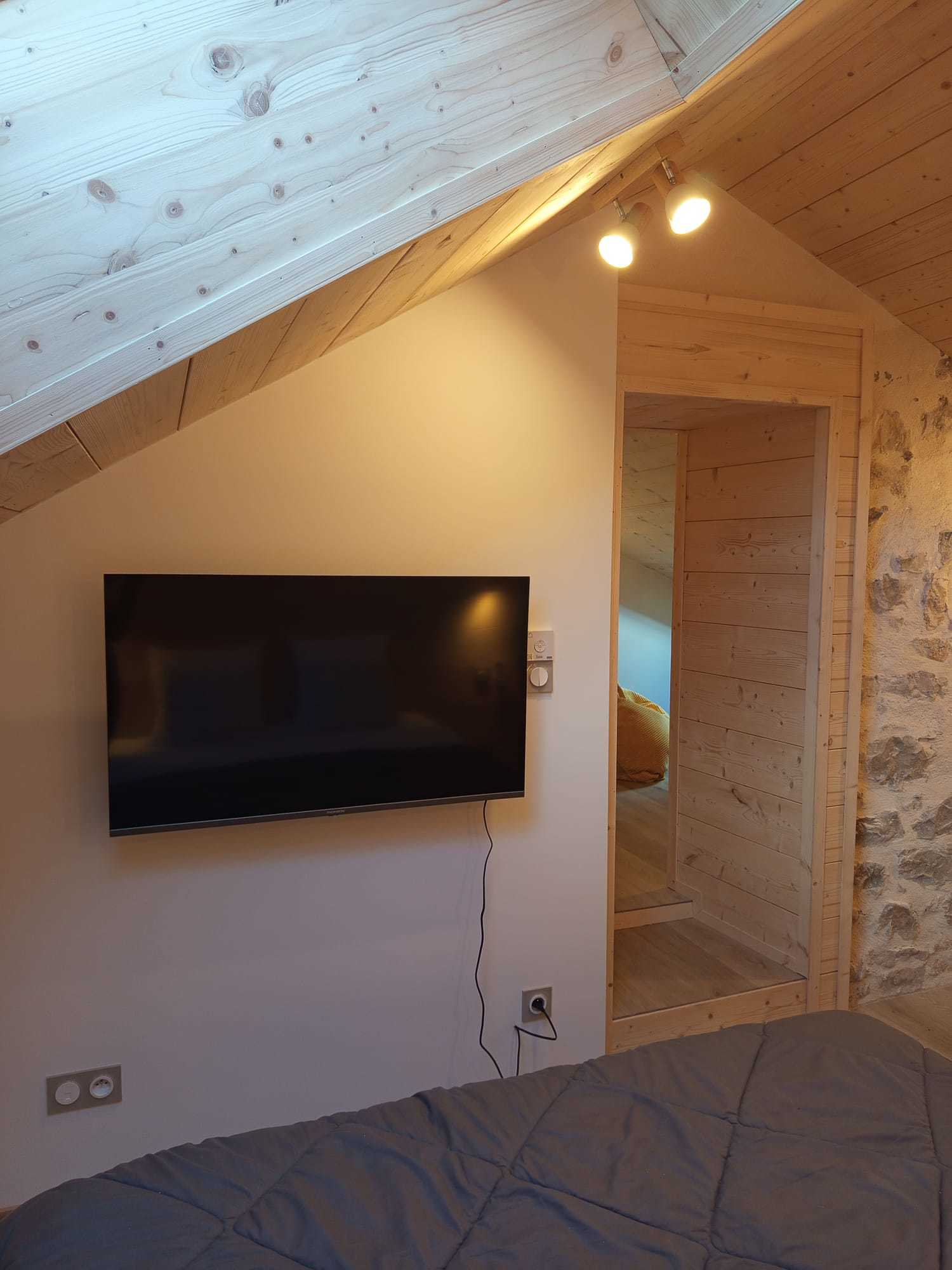 Au cœur de Champagnole, dans une bâtisse en pierre, appartement atypique en duplex de 80 m2 sous les toits pouvant accueillir de 2 à 6 personnes.
