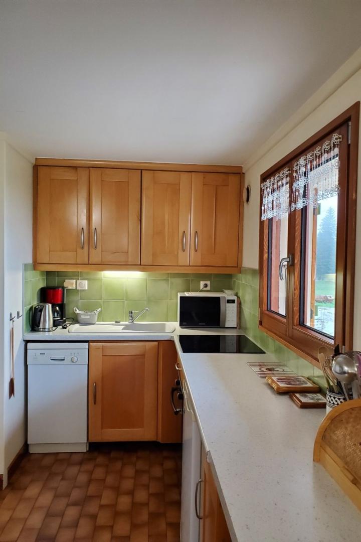 Situé en pleine nature, cet appartement en rez-de-chaussée d'un chalet se compose d'une pièce à vivre avec cuisine et coin salon, de deux chambres : l'une avec un grand lit et l'autre avec 2 lits simples et d'une salle d'eau avec WC. Emplacement idéal pour les amateurs de ski de fond, randonnées et ski de descente (station à 800 mètres). Plancha à disposition. L'appartement vous offre une vue dégagée et panoramique sur la nature. Un véritable havre de paix, n'attendez pas pour réserver ! Possibilité d'accueil d'un animal de petite taille sur accord de la propriétaire. Parking privatif sur place.