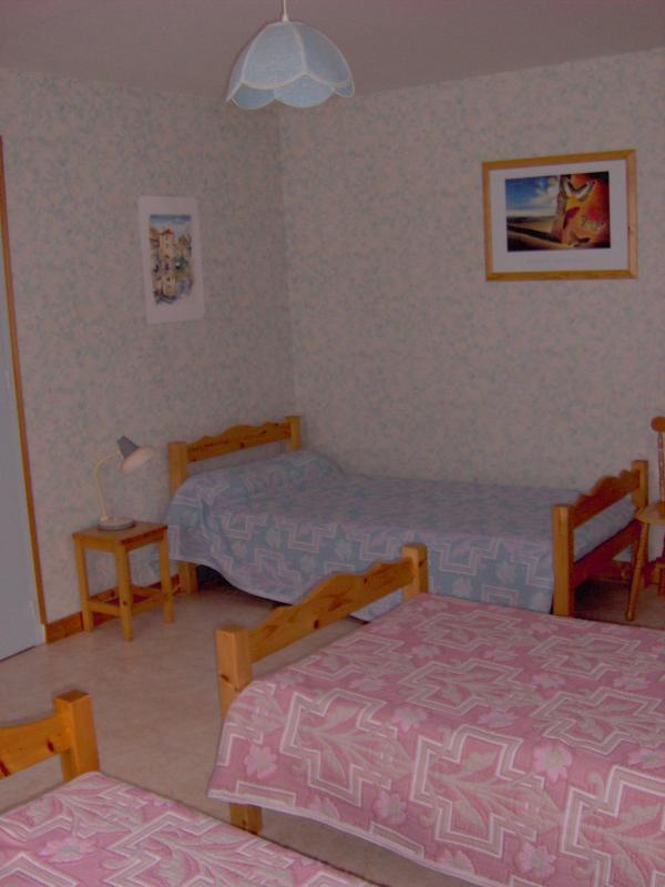 Logement à l'étage de la maison des propriétaires, avec entrée indépendante. Cuisine-séjour, salle d'eau, sèche linge, wc indépendants. ch1: 1 lit 2 pl, ch2: 3 lits 1 pl, terrain attenant non clos, salon de jardin, barbecue, balançoire. Chauffage électrique. Parking privé.